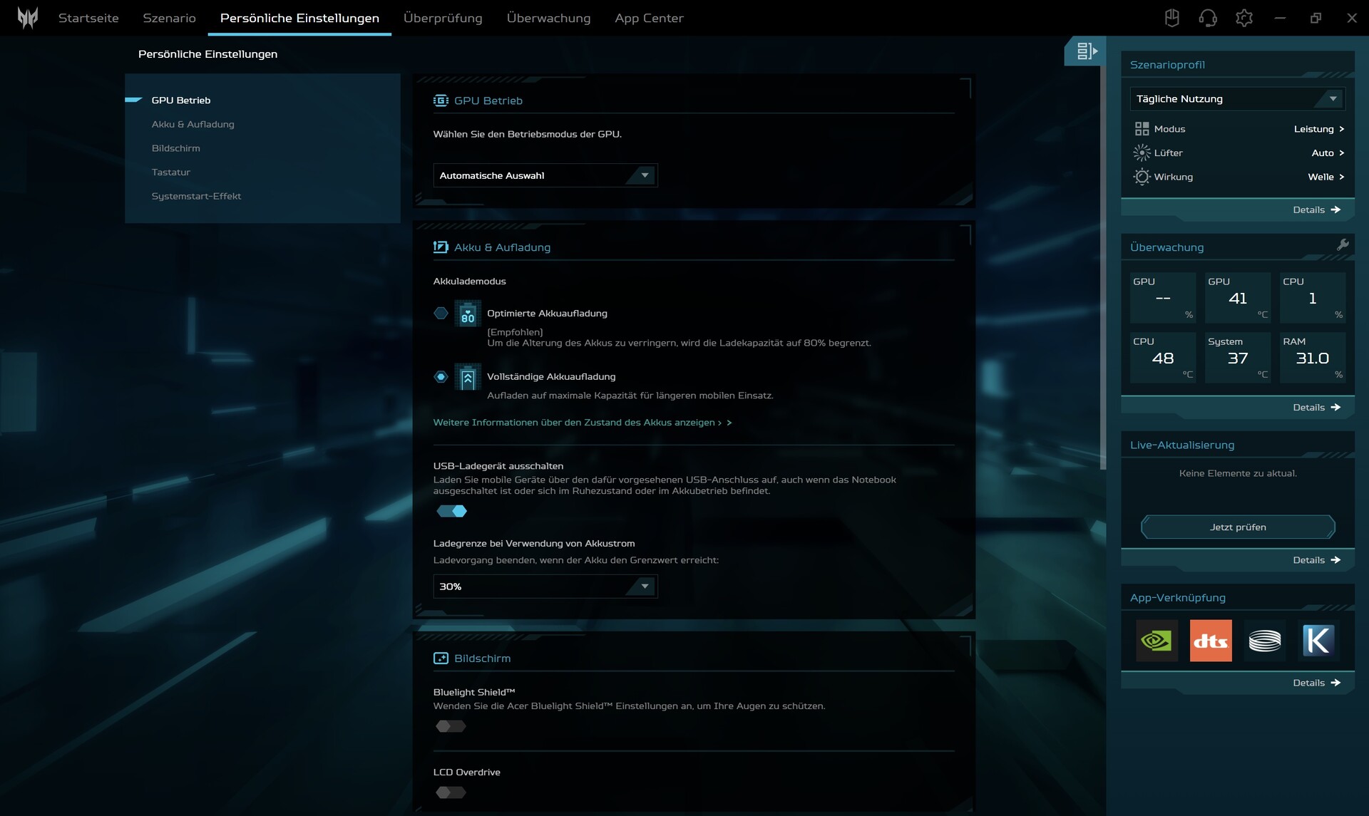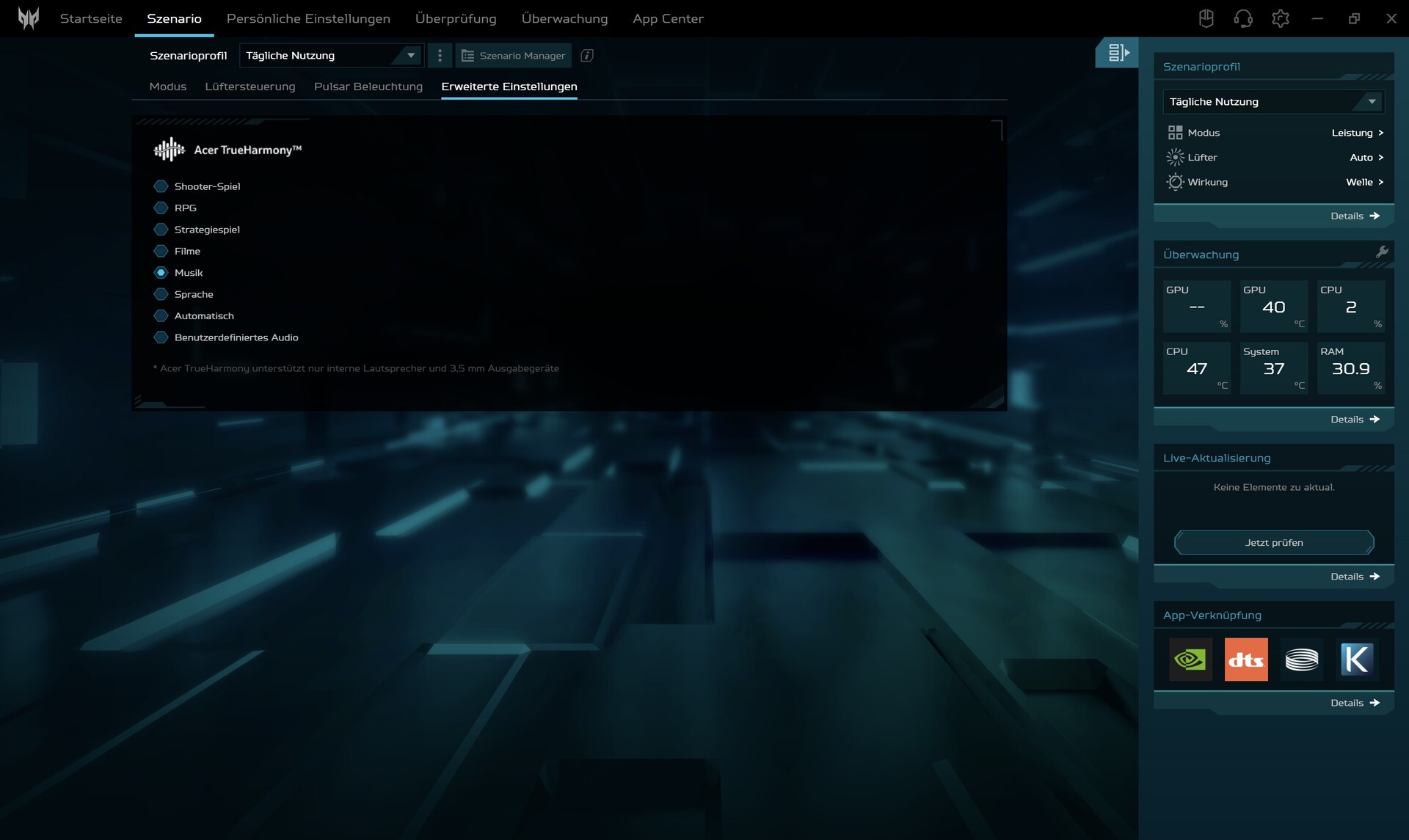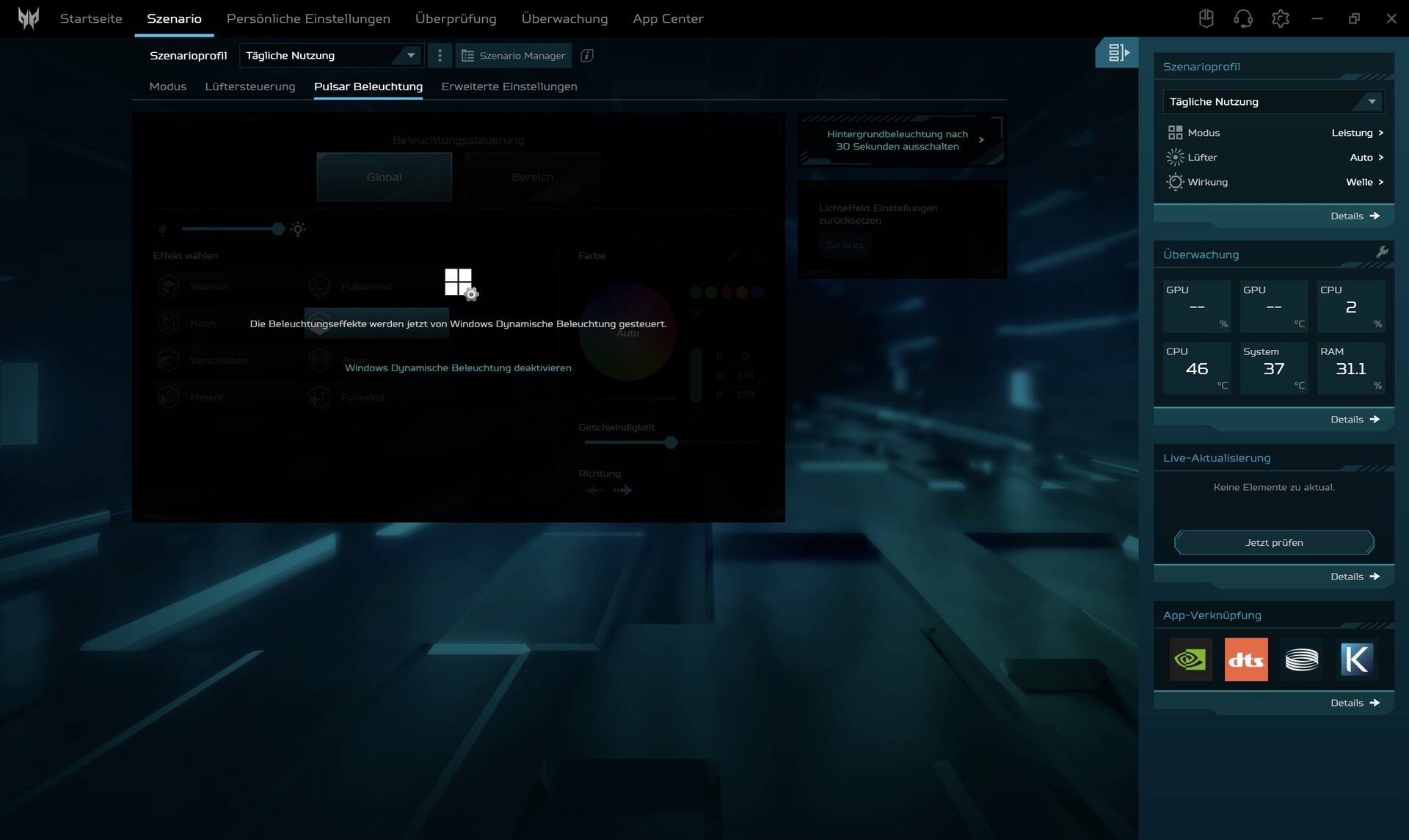 When it comes to temperatures, the Acer offshoot isn't out of line at all. A maximum of 46 °C on the top and a maximum of 48 °C on the bottom are typical for an RTX 4070 device. In idle mode, the case stays below the 30 °C mark and therefore remains nice and cool.