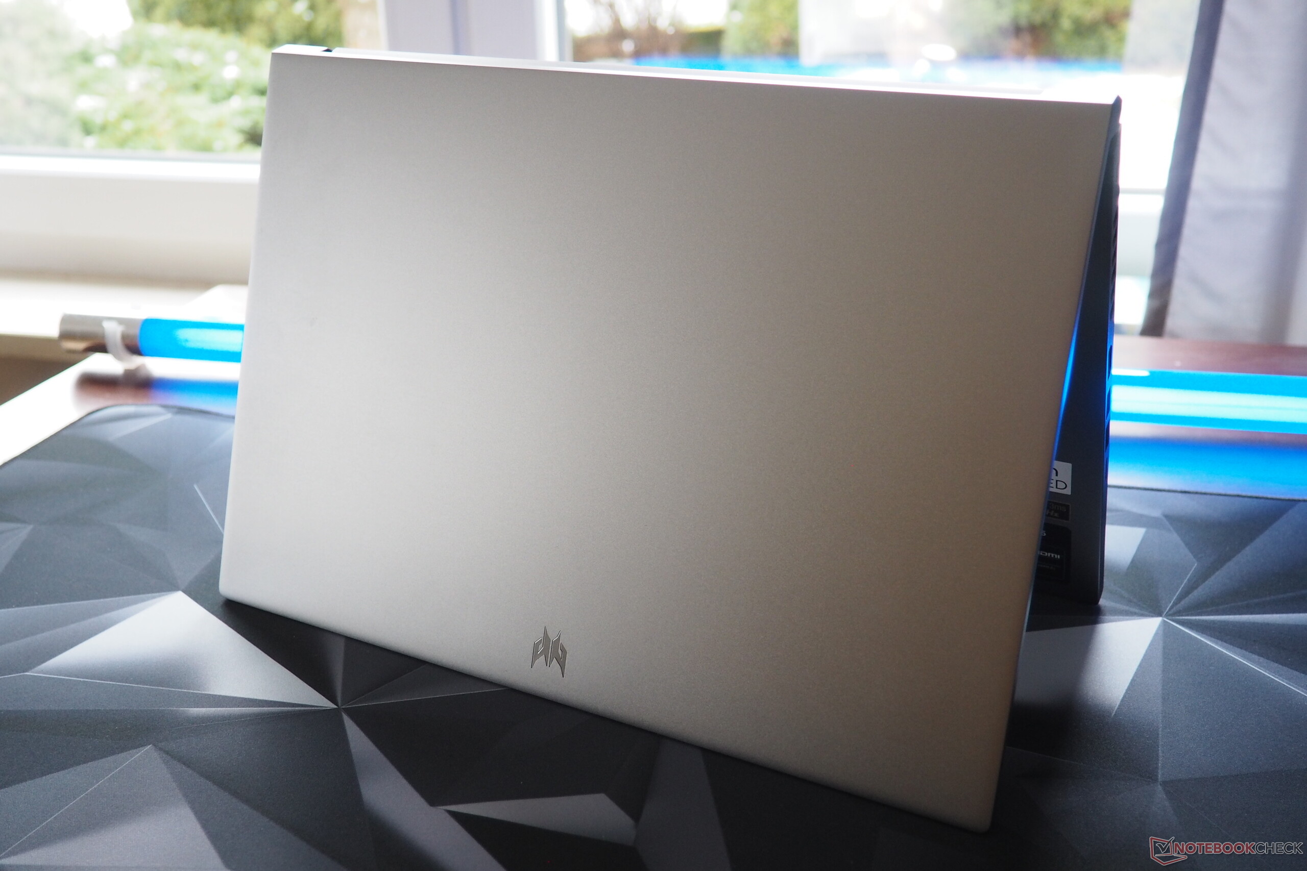 One of the biggest highlights of the Predator Triton is its elegant and nice-looking case. Its metal surfaces leave a high-quality impression and barely attract fingerprints thanks to its light color. The case's stability is equally good, with the exception of a few details (the touchpad gives way quite a bit in places). Acer also deserves praise for the device's well-functioning hinges, although their maximum opening angle of approx. 135° could be a little wider. On the other hand, we have nothing to criticize about its build quality.