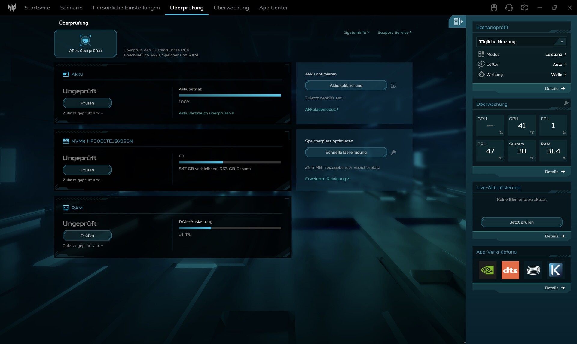 Its GPU performance, on the other hand, isn't quite as impressive. The GeForce RTX 4070 can only develop a limited part of its potential performance and balances out below our previously determined average. Furthermore, there aren't many maintenance and upgrade options. Although the 16-inch device has two M.2 slots (one of which is still free), its RAM has been soldered on—whereby the 32 GB that our test device features should probably be enough for most users for the time being. All-in-all, we would rate the Predator Triton Neo 16 as a good but not outstanding gaming and creating laptop.
