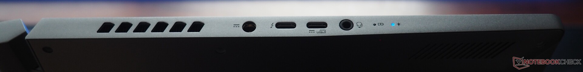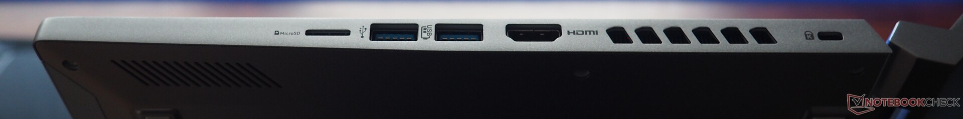 The Neo 16 offers a wide range of ports. While the left side houses the power connection, an audio jack and two USB-C ports (1x USB 4 with DisplayPort 1.4 & PowerDelivery), the right side is equipped with a micro SD card reader, two USB-A ports (3.1 Gen 2), HDMI 2.1 and an opening for Kensington locks. Even so, Acer should have added an RJ45 port to the device to secure it a very good connectivity rating.