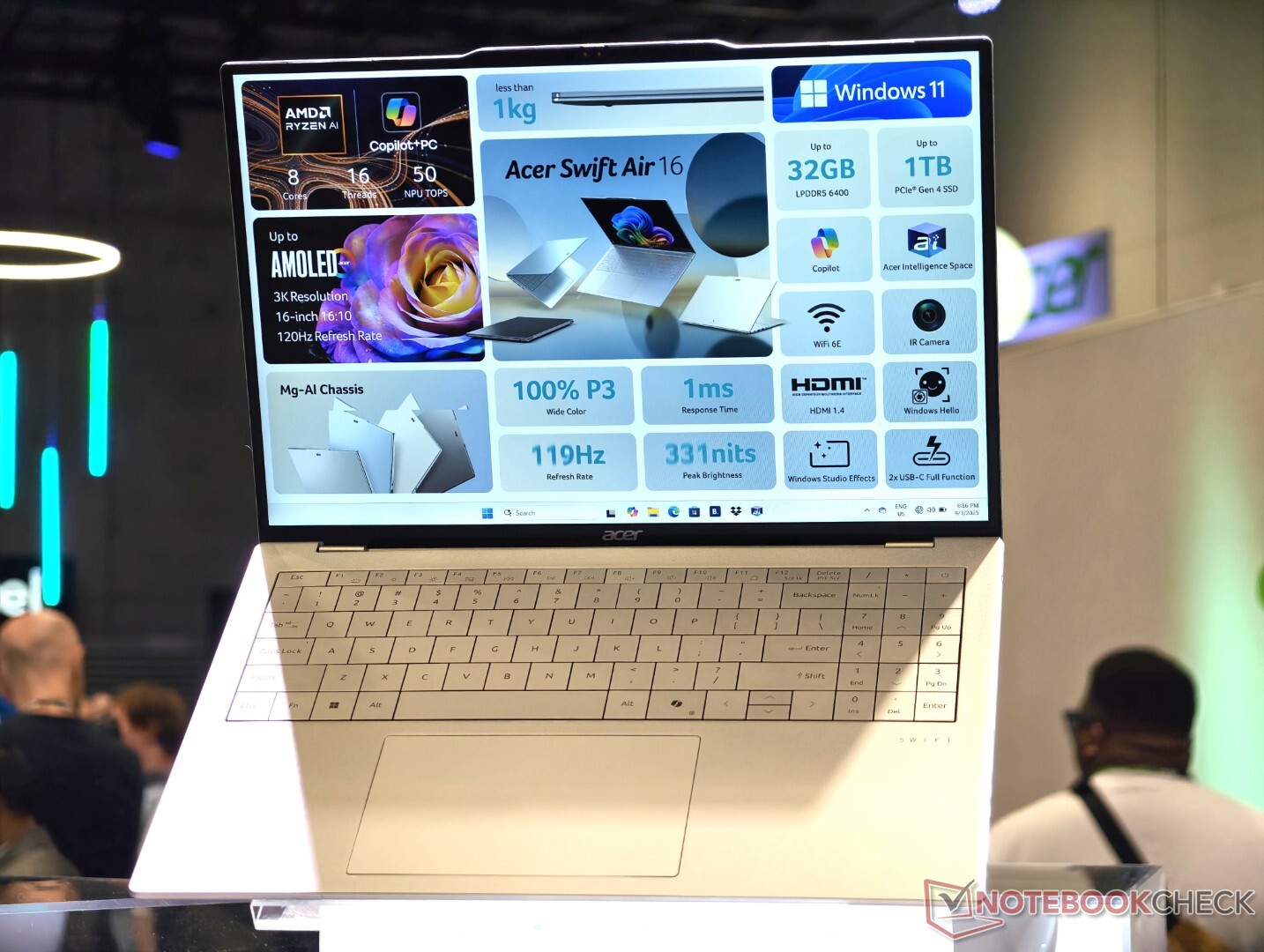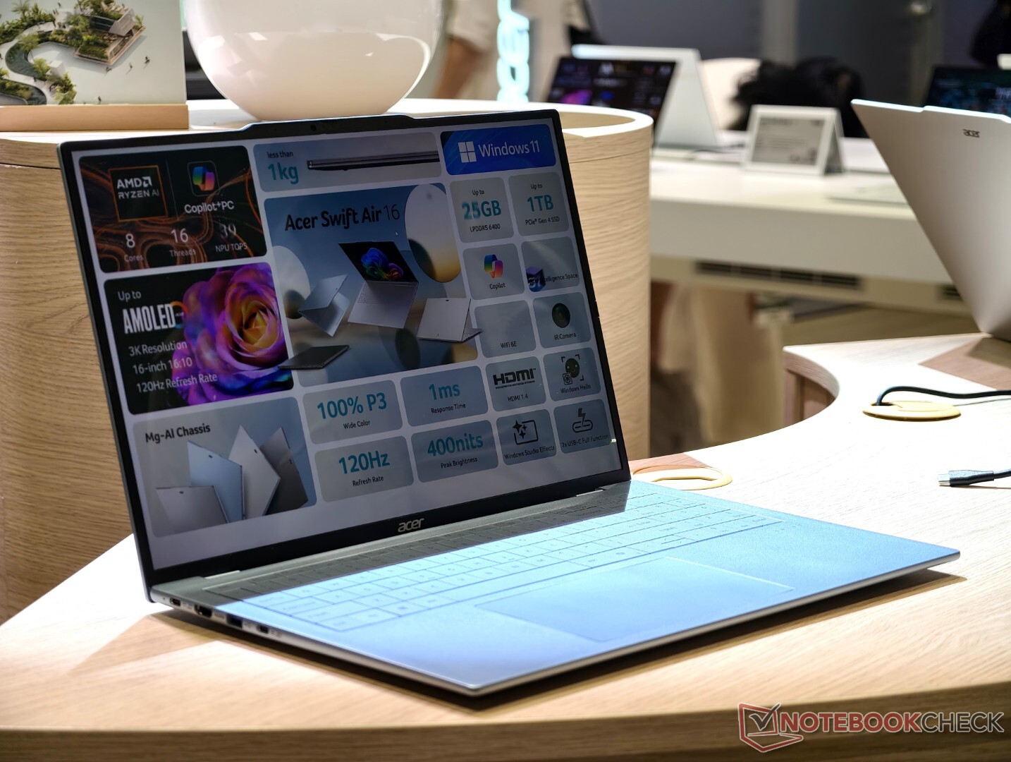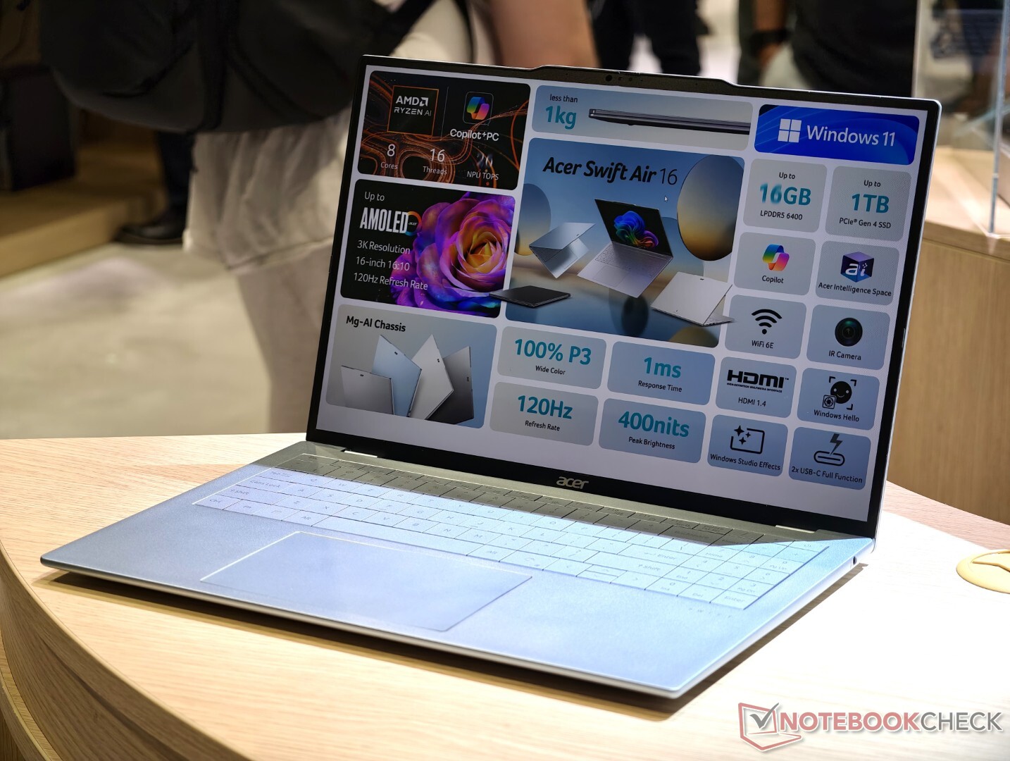 Acer has officially unveiled the Acer Swift Air 16 in the lead-up to IFA 2025 in Berlin. To our knowledge, there is no 16-inch laptop to date that weighs less than 2.2 lbs or 1 kg. While there are certainly some laptops on the market that weigh a few ounces more, but until now buyers in this segment had settle for a comparatively small 13- or 14-inch display, as more screen real estate always came at the cost of more weight.