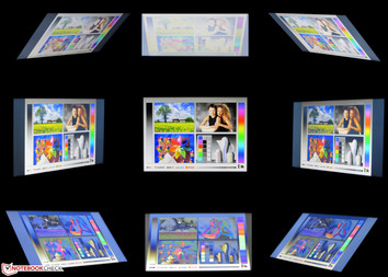 The screen's color reproduction is not very satisfactory, either. The DeltaE 2000 color shift is 9.91 in delivery state. A rate less than three would be desirable. Furthermore, the screen exhibits a bluish tint. The AdobeRGB and sRGB color spaces cannot be reproduced. The coverage rates are 37% (AdobeRGB) and 58% (sRGB).