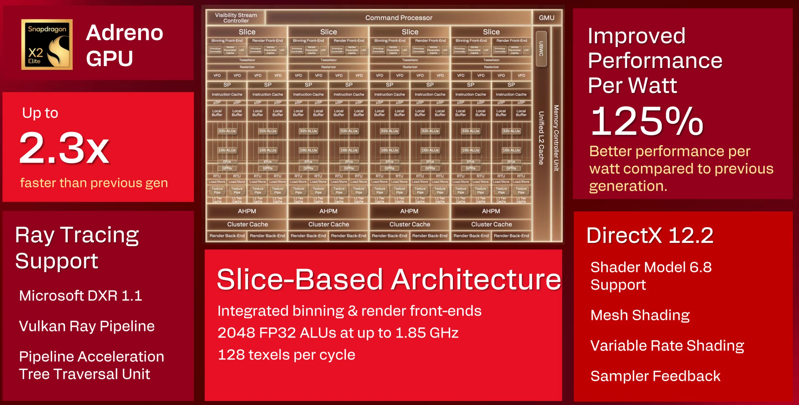 Qualcomm has posted new information about the new Adreno X2 GPU powering its Snapdragon X2 Elite CPUs. It has four render slices with 2,048 ALUs (roughly equivalent to 16 AMD WGPs). The company claims it is up to 2.3 times faster than its predecessor while being 125% more power efficient. And it now supports kernel-level anti-cheat software, allowing future Snapdragon X2 Elite-powered laptops to run a wider range of games protected by Denuvo, Tencent ACE, GameGuard, BattleEye, and Uncheater. Interestingly, Riot's Vanguard isn't on the list.