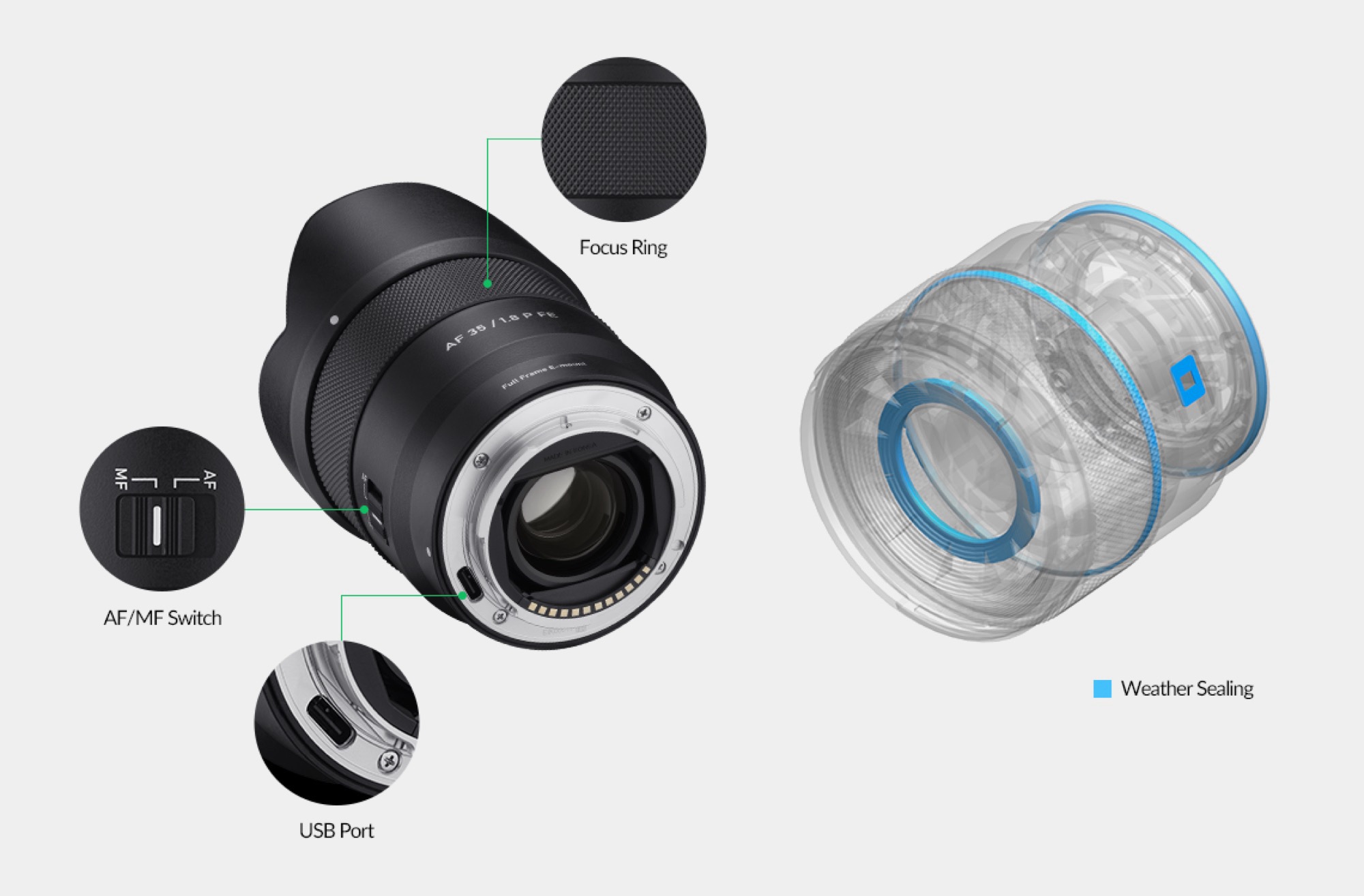 A dedicated slider allows you to switch between autofocus and manual focus. The lens offers a minimum focus distance of 0.27 meters and a filter thread with a diameter of 62 millimeters. As Samyang cannot install firmware updates directly via the camera, the manufacturer has installed a USB-C port in the mount, which can be used to install updates.
