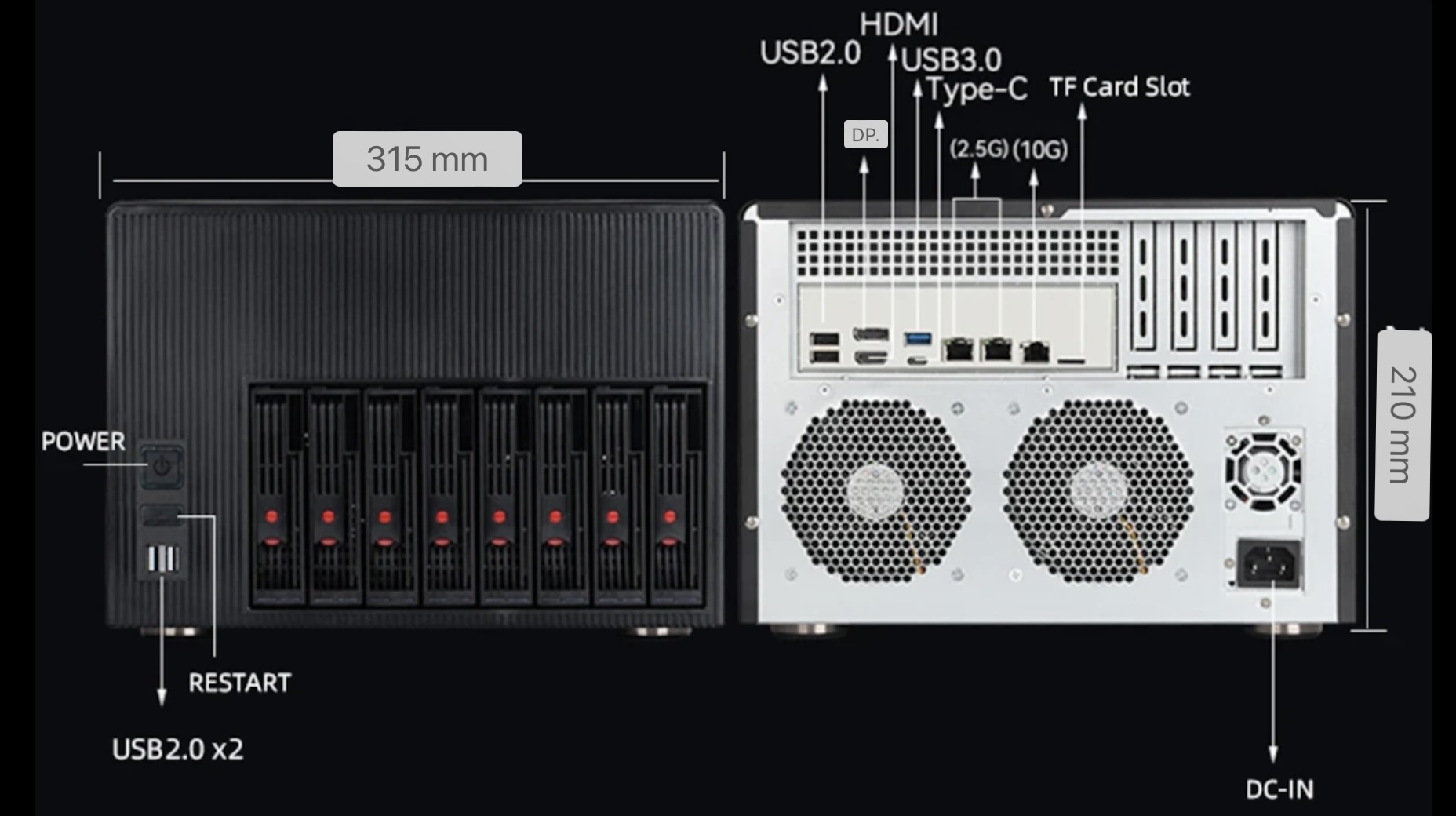 Externally, the XYC X108 NAS system features a design that is hardly anything to phone home about, thanks to its generic design. However, the system does deliver the essential, packing eight drive bays (3.5" and 2.5", SATA 3.0) that can support up to a whopping 144 TB of storage. An M.2 2280 slot is also present, which can be equipped with an NVMe SSD to take care of the OS.
