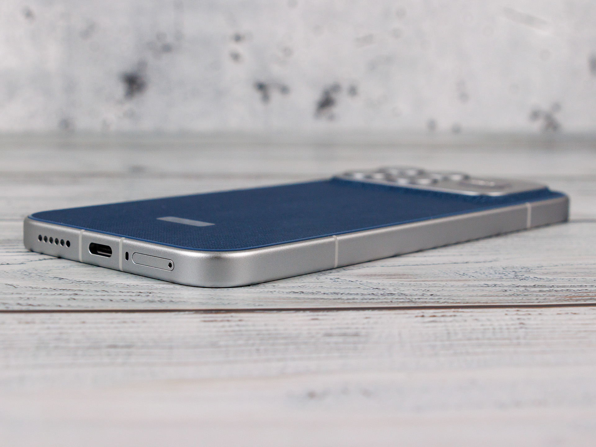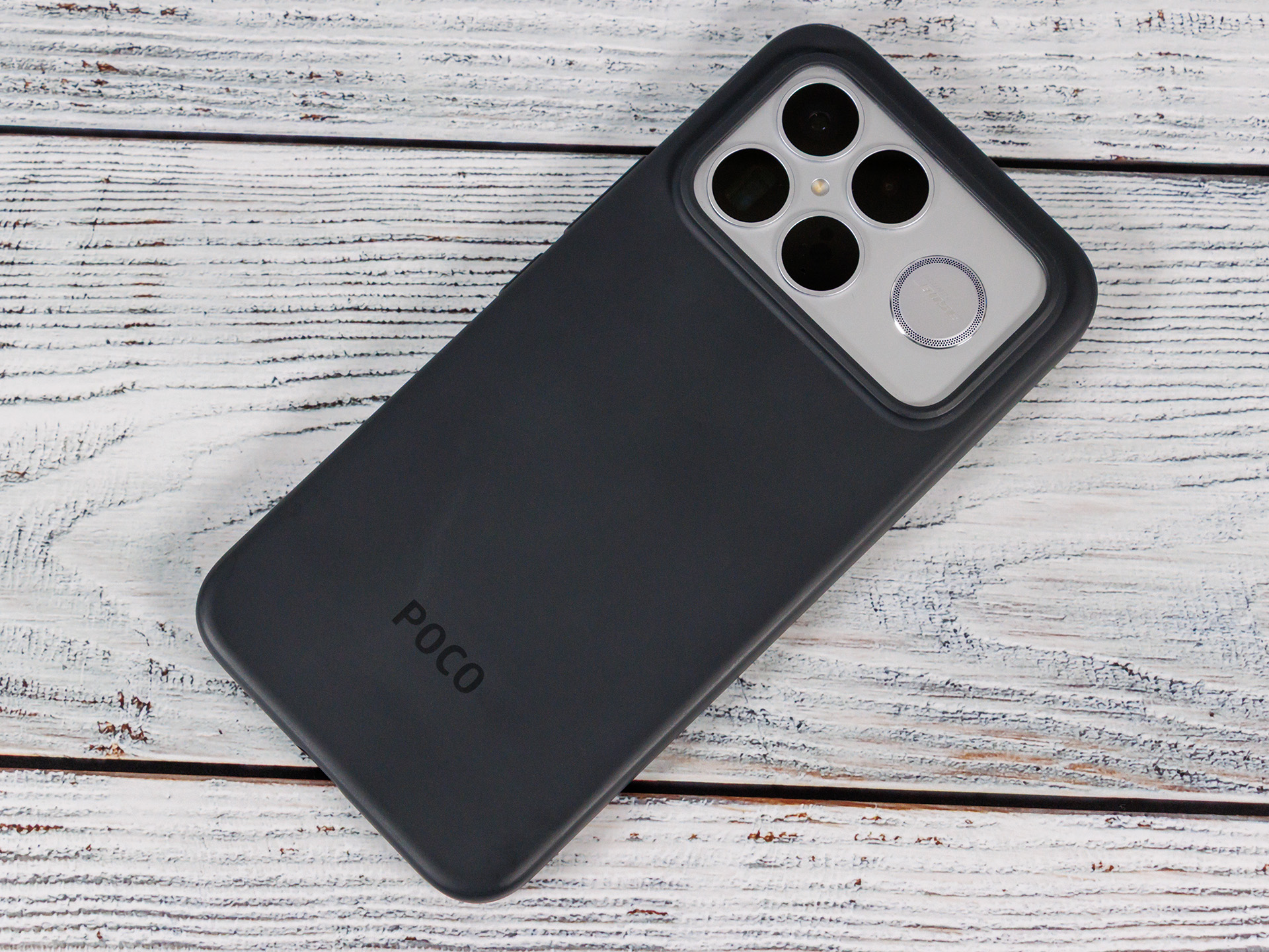 Build quality appears high overall. The denim-style rear panel features a coarse texture and offers very good grip, although it feels more rubber-like than fabric-like to the touch. Panel gaps are tight and even, and the smartphone exhibits only minimal creaking when subjected to torsional stress. In addition, the device is certified to the IP68 standard, making it resistant to both dust and water. The front is protected by Poco's in-house Poco Shield Glass.