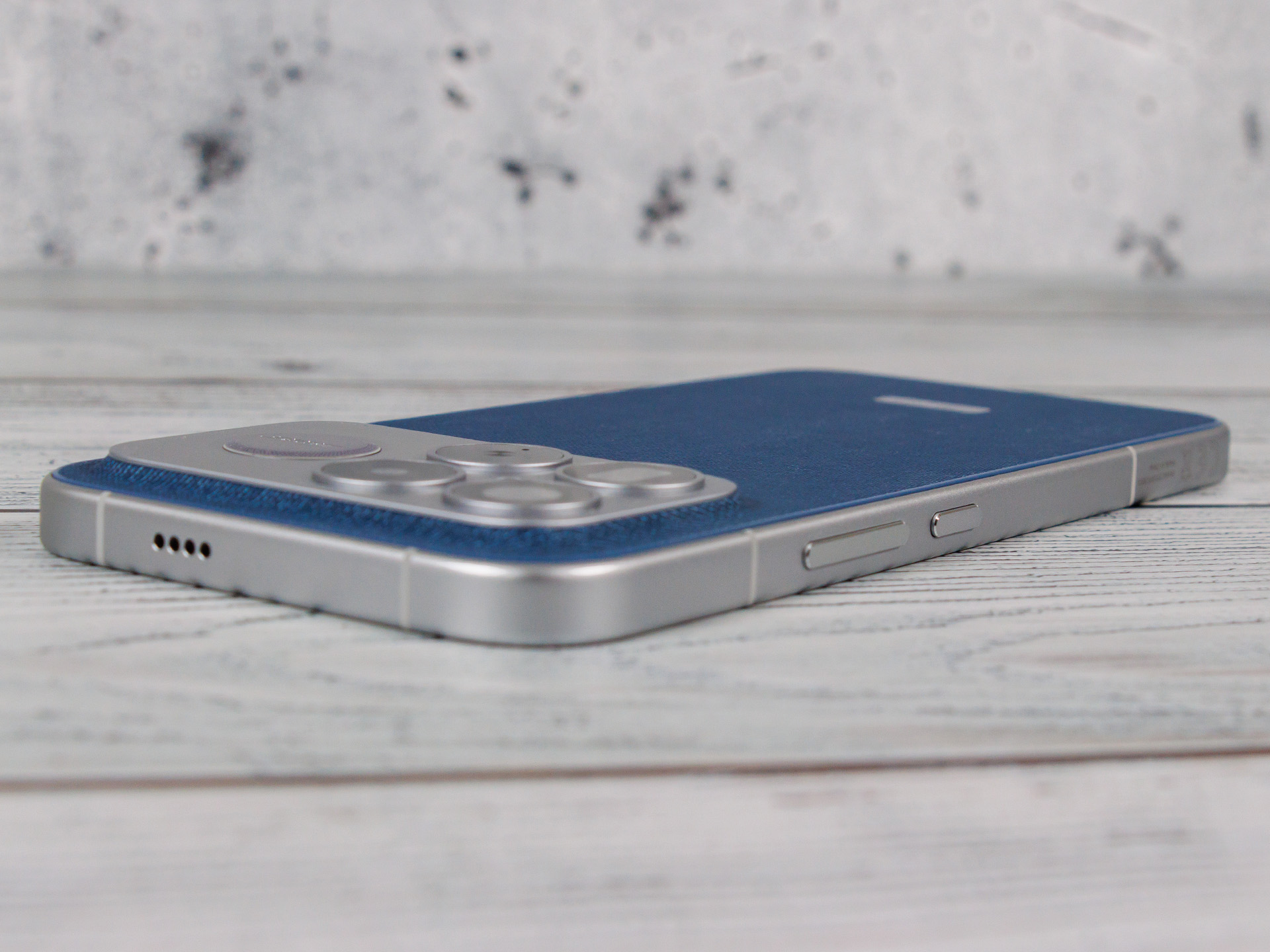 The Poco F8 Ultra is available in Black and Denim Blue colour variants. On the black model, the frame is matte black and the rear panel is made from a fibreglass composite. The blue version, by contrast, uses a silicone-resin-based nanomaterial designed to mimic the look of denim, paired with a matte silver aluminium frame. The chassis has a nominal thickness of 8.3 mm, which we were able to confirm. Including the camera module, thickness increases to up to 11.9 mm.