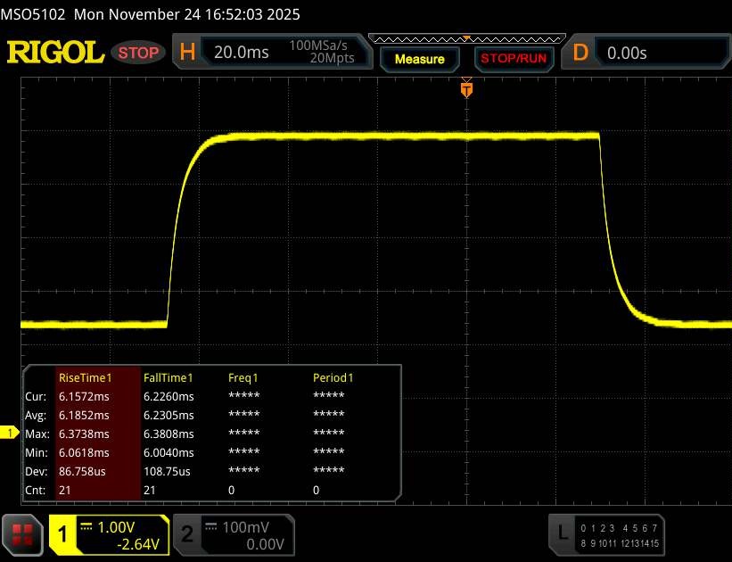 | 12.4 ms ... rise ↗ and fall ↘ combined | ↗ 6.2 ms rise | |