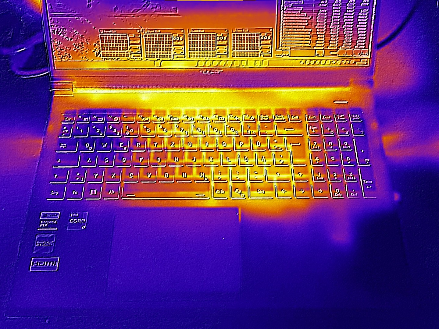 (±) The maximum temperature on the upper side is 40 °C / 104 F, compared to the average of 40.4 °C / 105 F, ranging from 21.2 to 68.8 °C for the class Gaming.