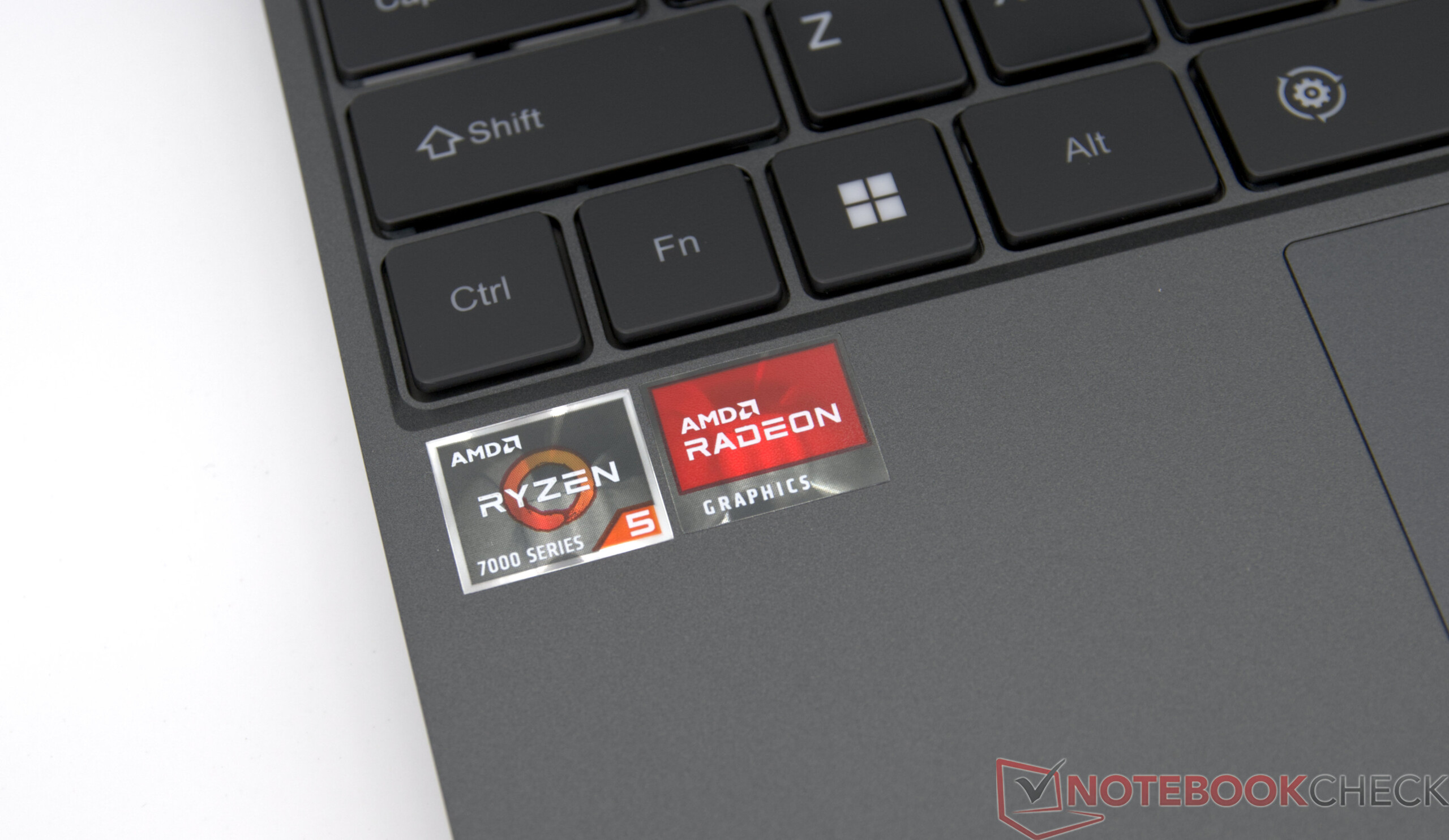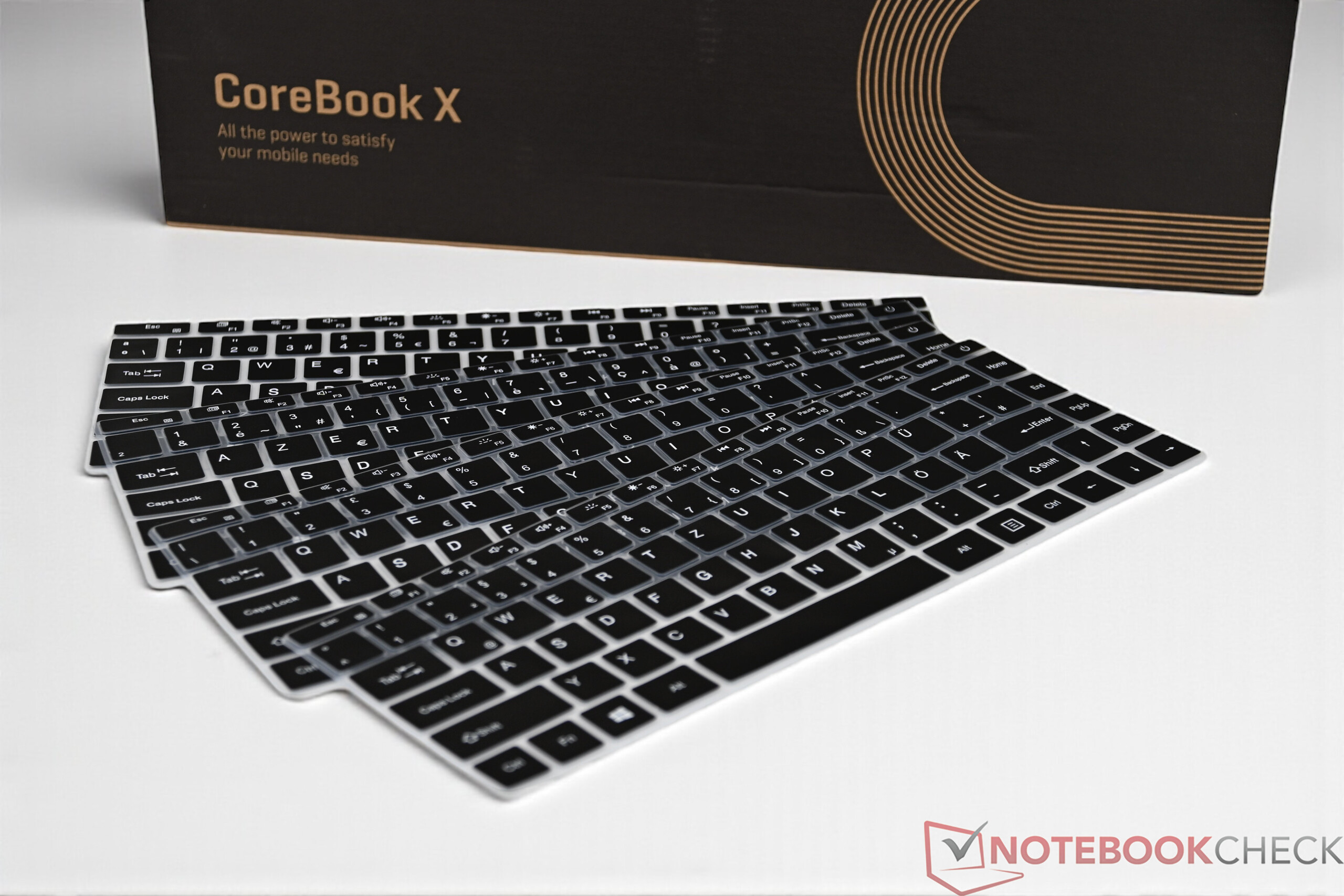 The keys offer precise and strong feedback, which noticeably improves the typing experience. However, the right shift key is smaller, as Chuwi has integrated full-size arrow keys instead. The CoreBook X is only offered with the QWERTY layout, which is also equipped with a two-stage backlight. For other language layouts, Chuwi includes rubber pads that reduce the typing experience somewhat.