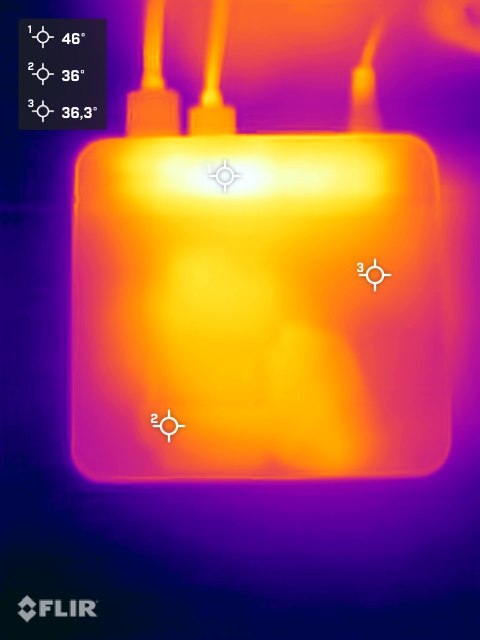 (-) The bottom heats up to a maximum of 49.5 °C / 121 F, compared to the average of 36.5 °C / 98 F
