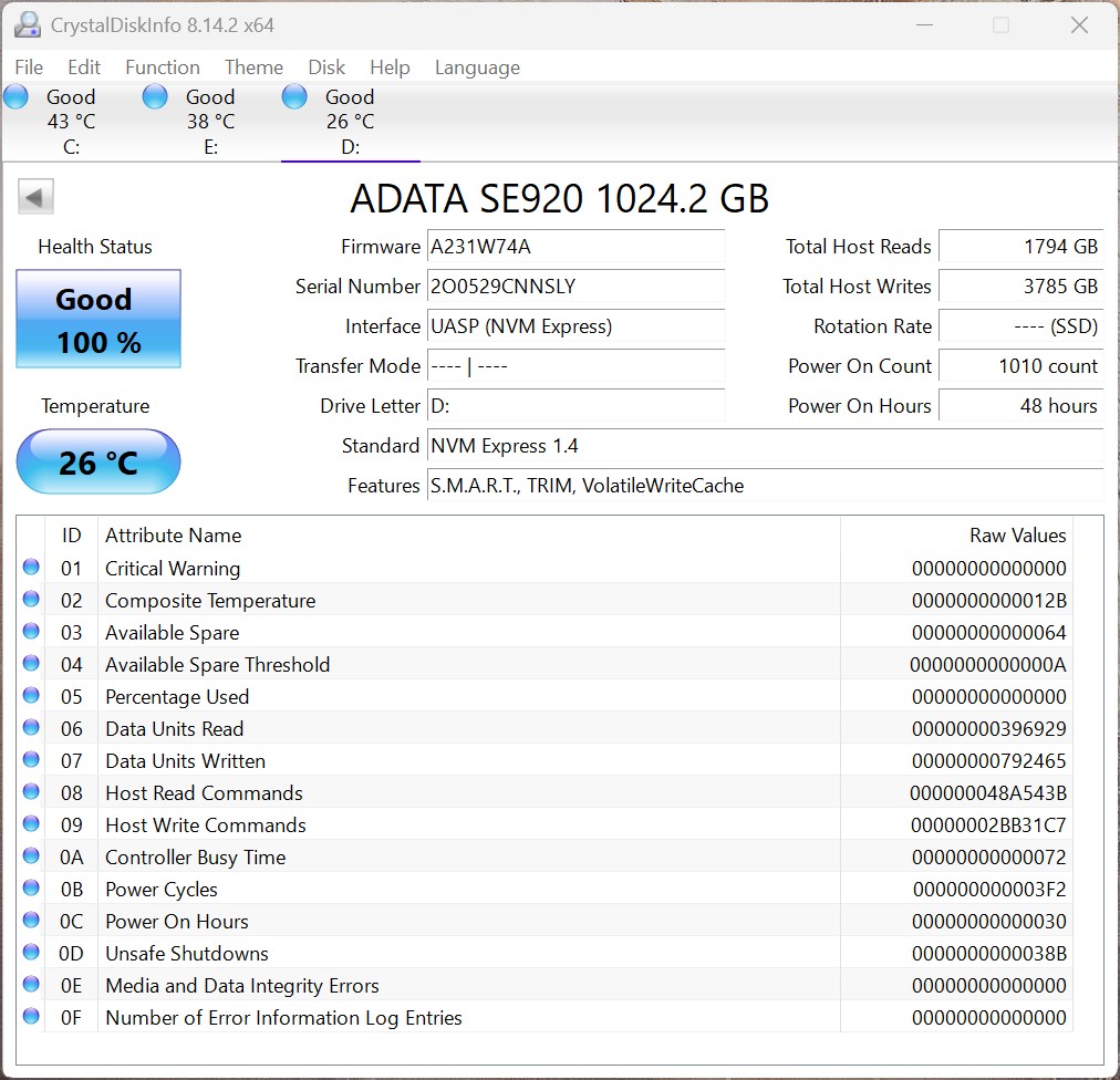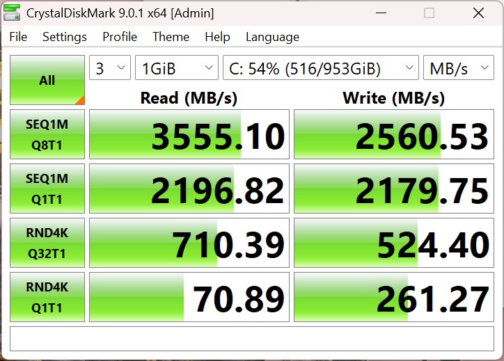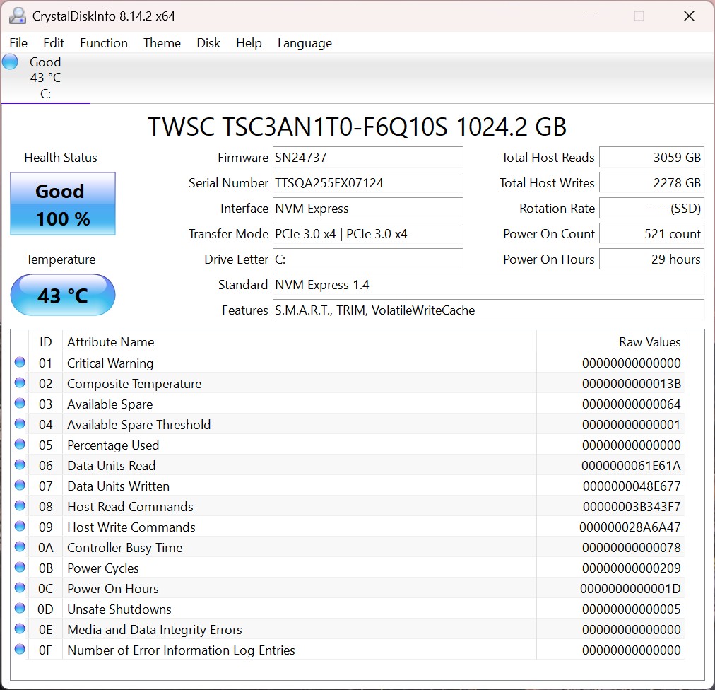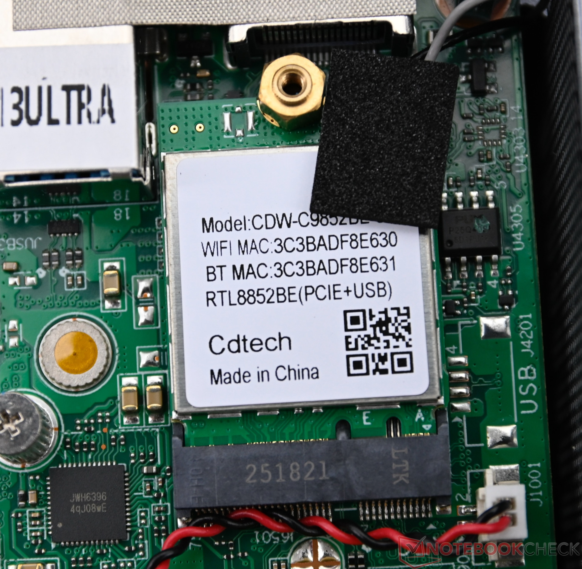 A 1 TB SSD from TWSC is installed in the GMKtec NucBox M3 Ultra. The mass storage device uses the PCIe 3.0 x4 interface and offers solid transfer rates that are perfectly adequate for everyday use. The active cooling unit is not present, which means that performance drops slightly under continuous load. There is also a second M.2-2280 slot for the installation of an additional SSD.