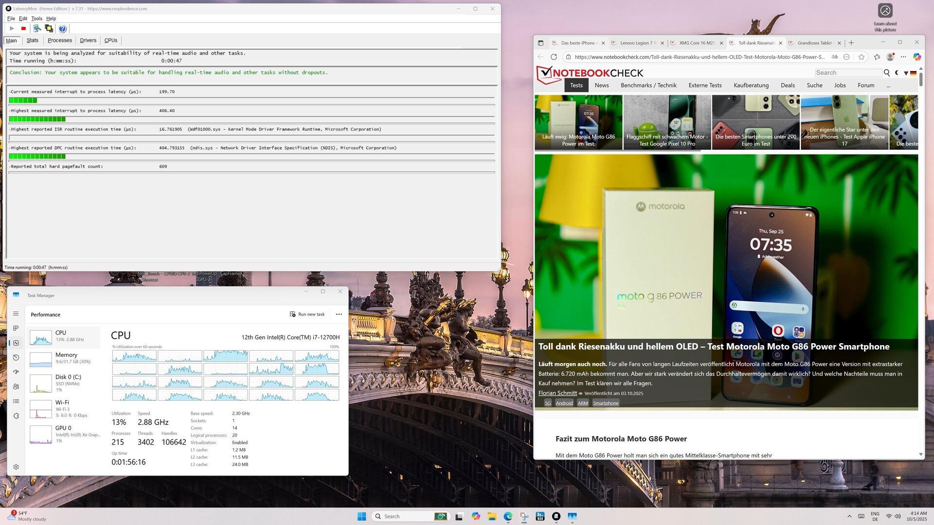 Like other models in the GMKtec series, the NucBox M3 Ultra scores with a strong price-performance ratio. With the Intel Core i7-12700H, it offers solid computing power that significantly outperforms many entry-level CPUs. This makes the mini PC ideal as a compact all-rounder, office system, or HTPC, which is also underpinned by low DPC latencies. Despite the comparatively low price for the barebone version, the build quality is impressive with a high-quality mix of aluminum and plastic.