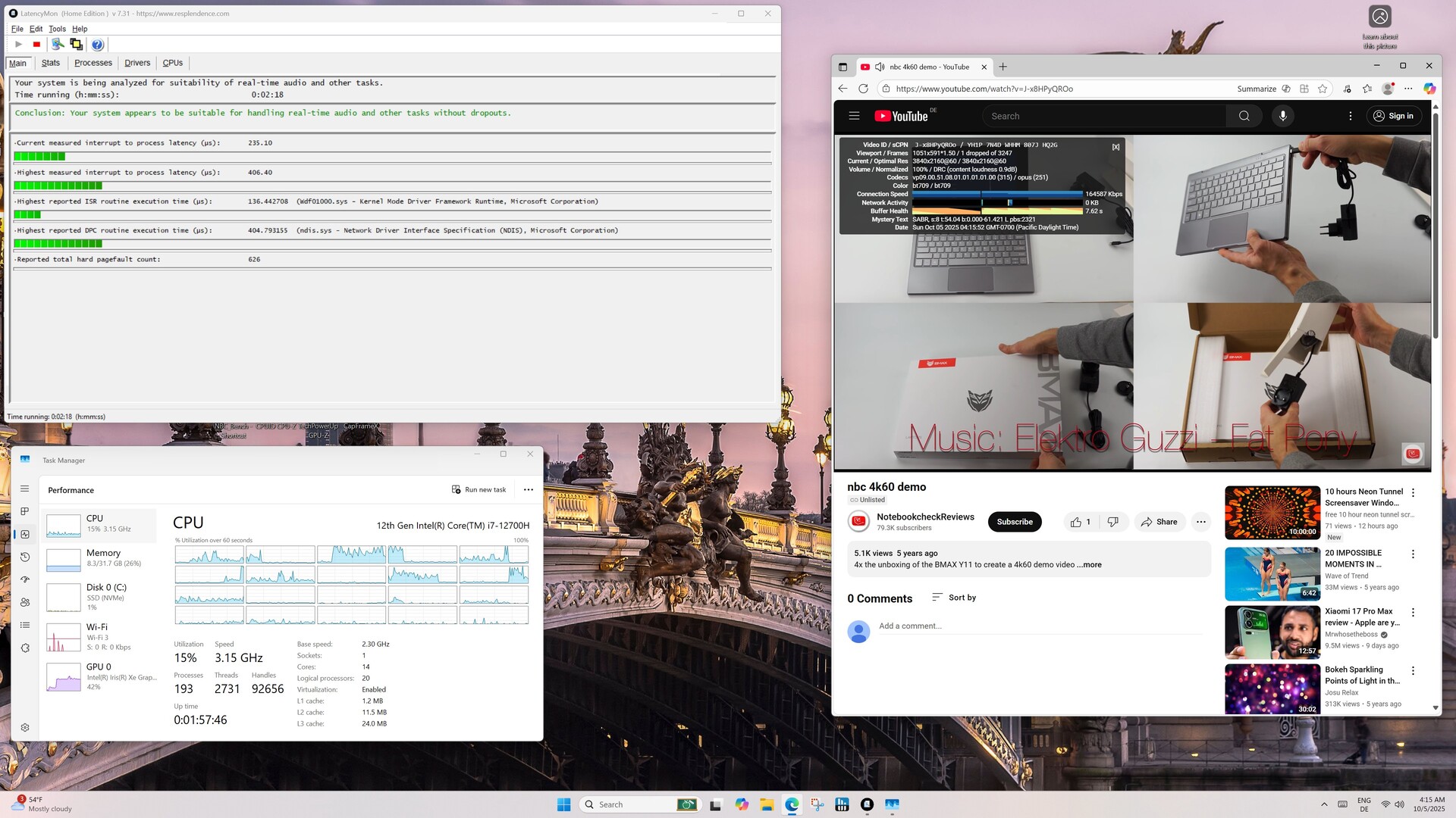 DPC Latencies / LatencyMon - interrupt to process latency (max), Web, Youtube, Prime95 | |