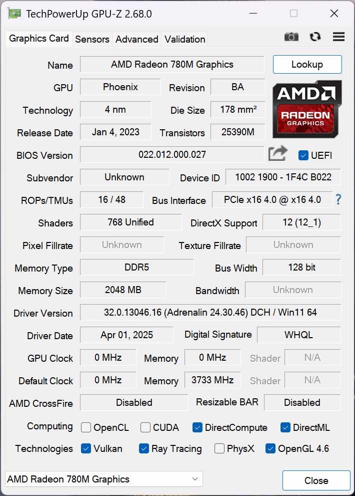 Radeon 780M, R9 8945HS, Kingston OM3PGP41024P-A0