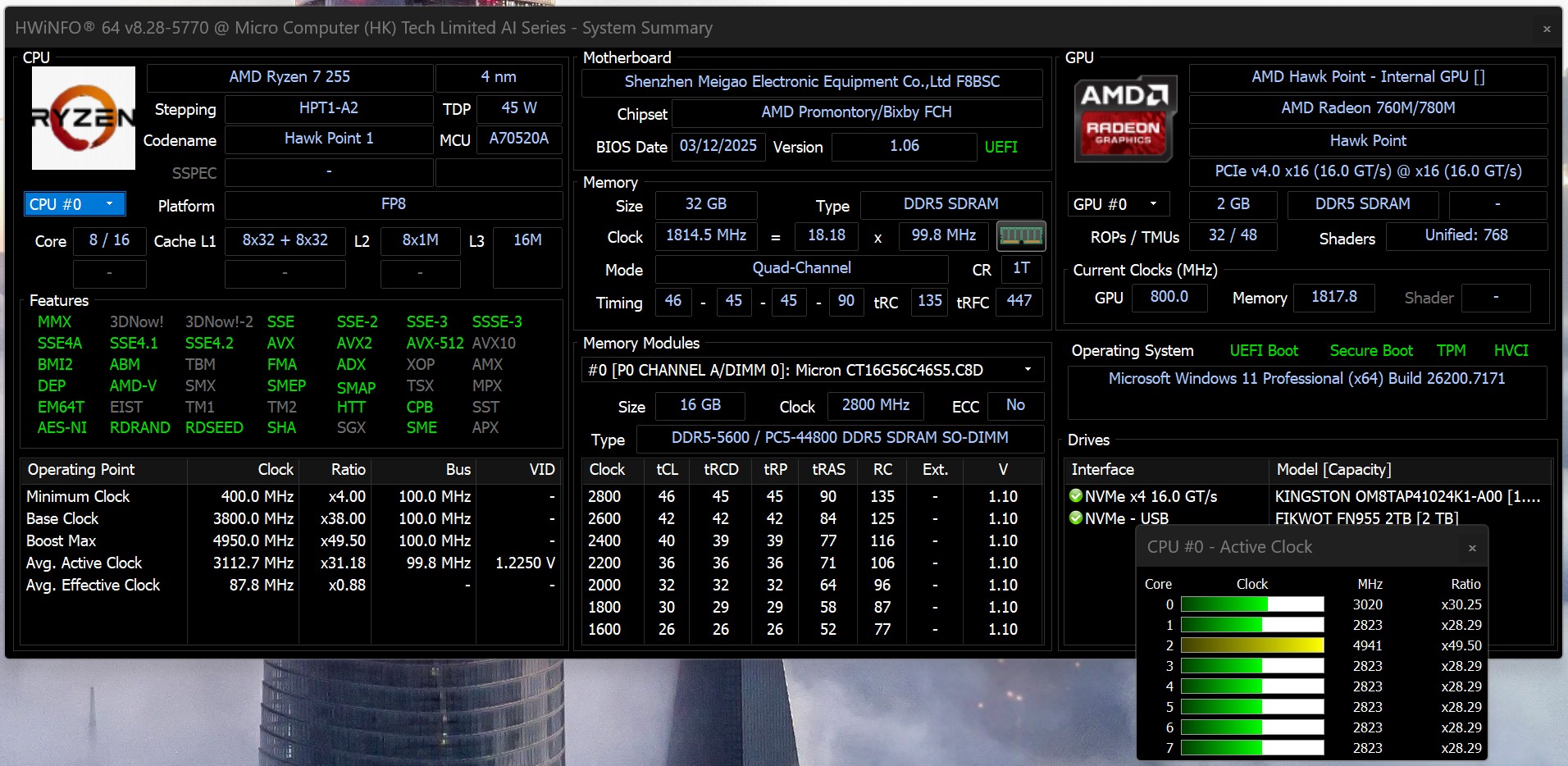 Radeon 780M, R7 8745HS, Lexar NQ7A1