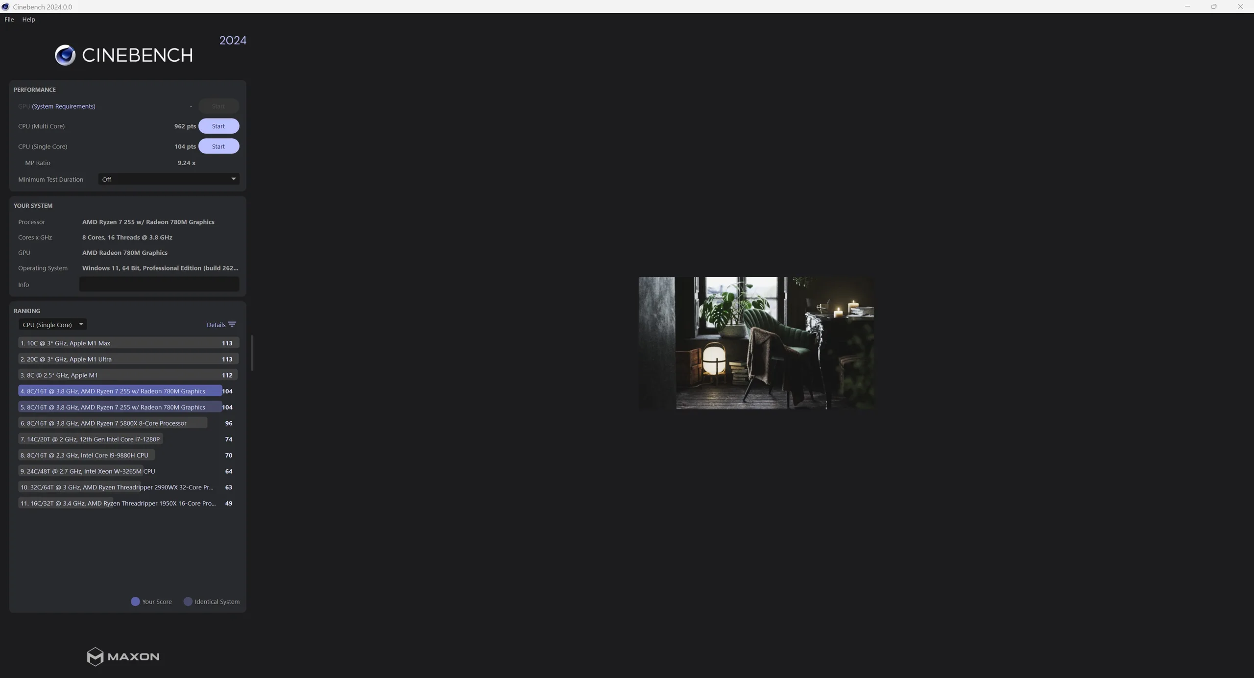 AMD Ryzen 7 255 8 x 3.8 - 5 GHz, 65 W PL2 / Short Burst, 54 W PL1 / Sustained, Hawk Point-H (Zen 4)