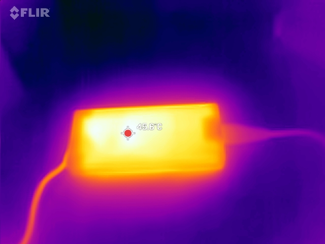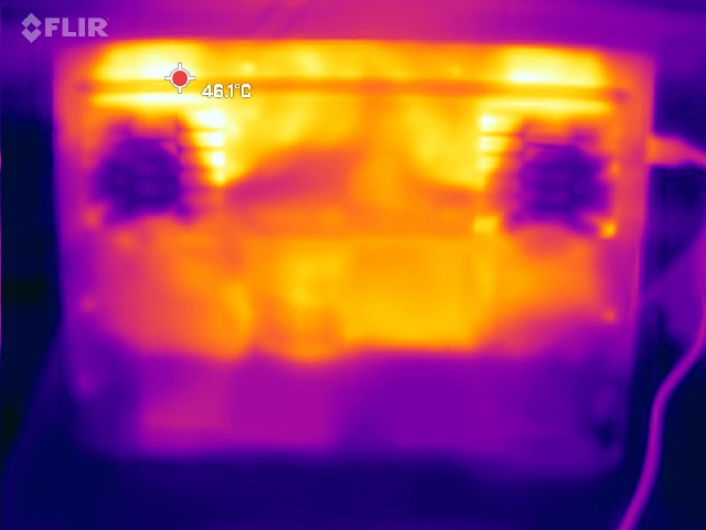(±) The bottom heats up to a maximum of 44 °C / 111 F, compared to the average of 43.2 °C / 110 F