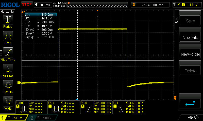 | 1.4 ms ... rise ↗ and fall ↘ combined | ↗ 0.8 ms rise | |