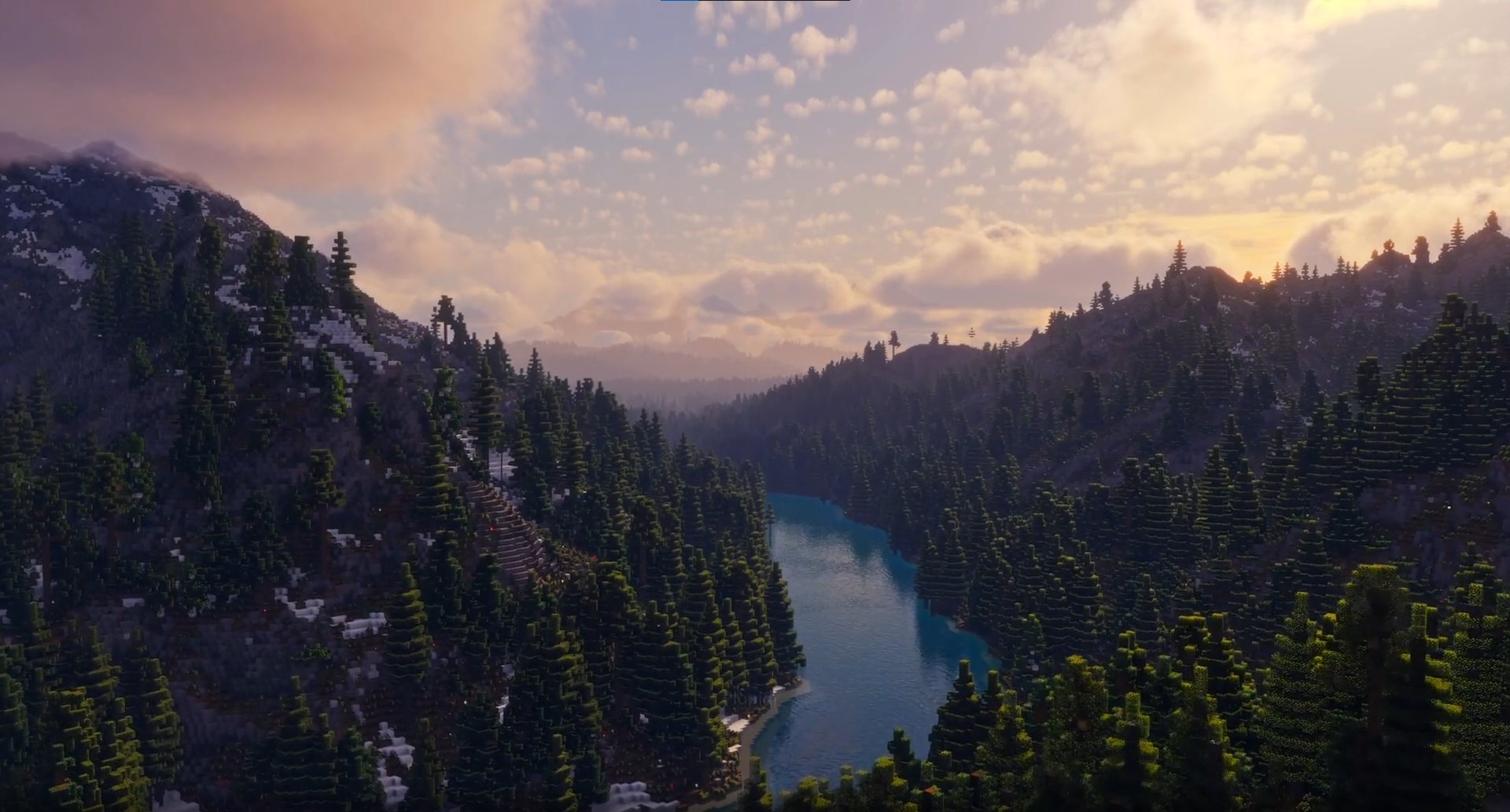 In the video shared by the user, we can see very realistic valleys, forests, rivers, and lakes. Some sequences are quite impressive, such as when we see the mountain peaks at sunset. However, if you want to play it, you should know that this is unfortunately not possible at the moment. Indeed, the user points out that this map is not suitable for survival due to the lack of buildings. In addition, there are caves and minerals, but they were generated before Caves and Cliffs, which is not ideal.