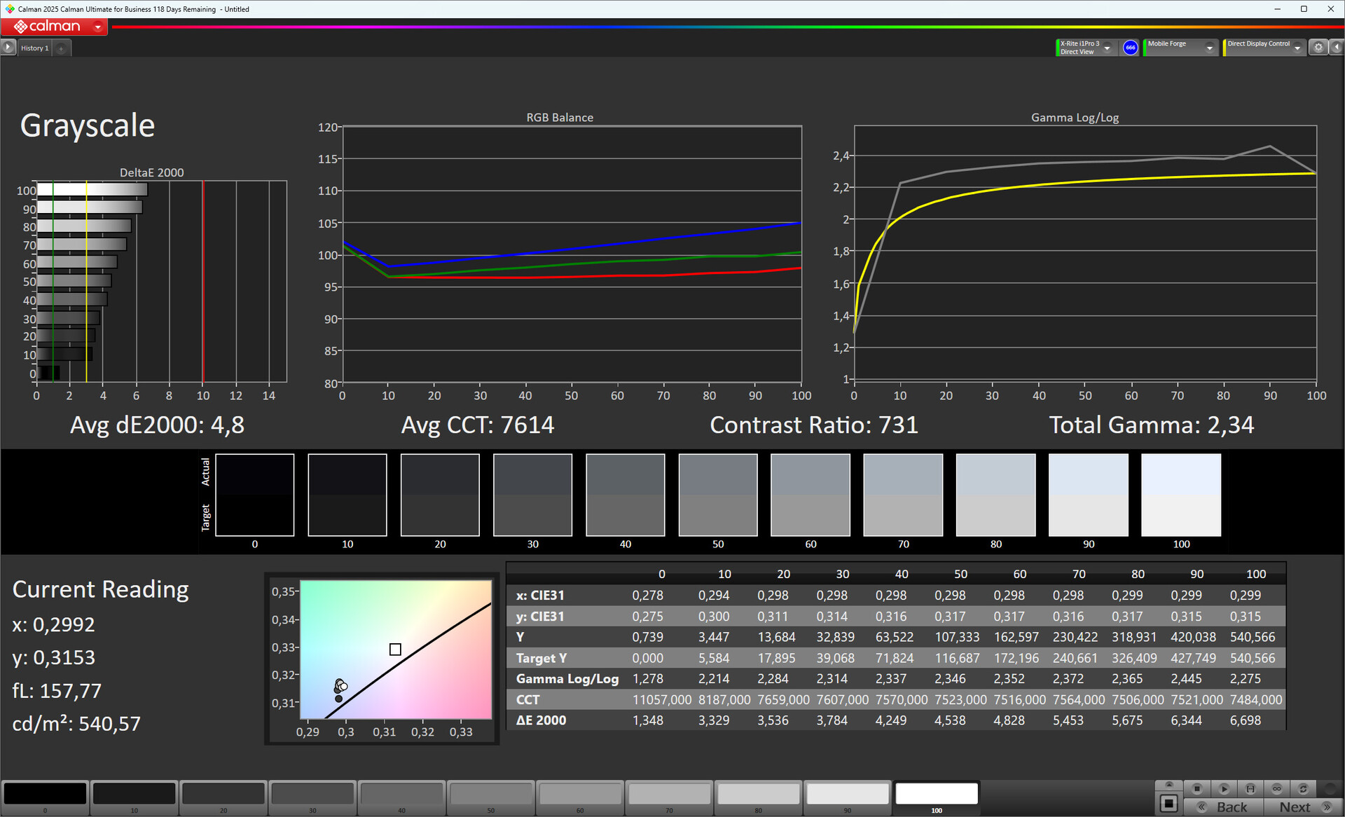 ΔE Greyscale Calman: 4.8 | ∀{0.09-98 Ø5}