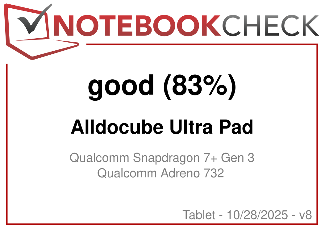 | Alldocube Ultra Pad Qualcomm Snapdragon 7+ Gen 3 ⎘ Qualcomm Adreno 732 ⎘ 12 GB Memory, 256 GB | Amazon: 1. $12.98 Oshmirian Screen Protector f... 2. $19.98 Case for ALLDOCUBE Ultra Pad... 3. $9.99 Qiawum Case for Alldocube ip... List Price: 460€ | 700 g | 256 GB UFS 3.1 Flash | 12.95" 2880x1840 264 PPI IPS | |