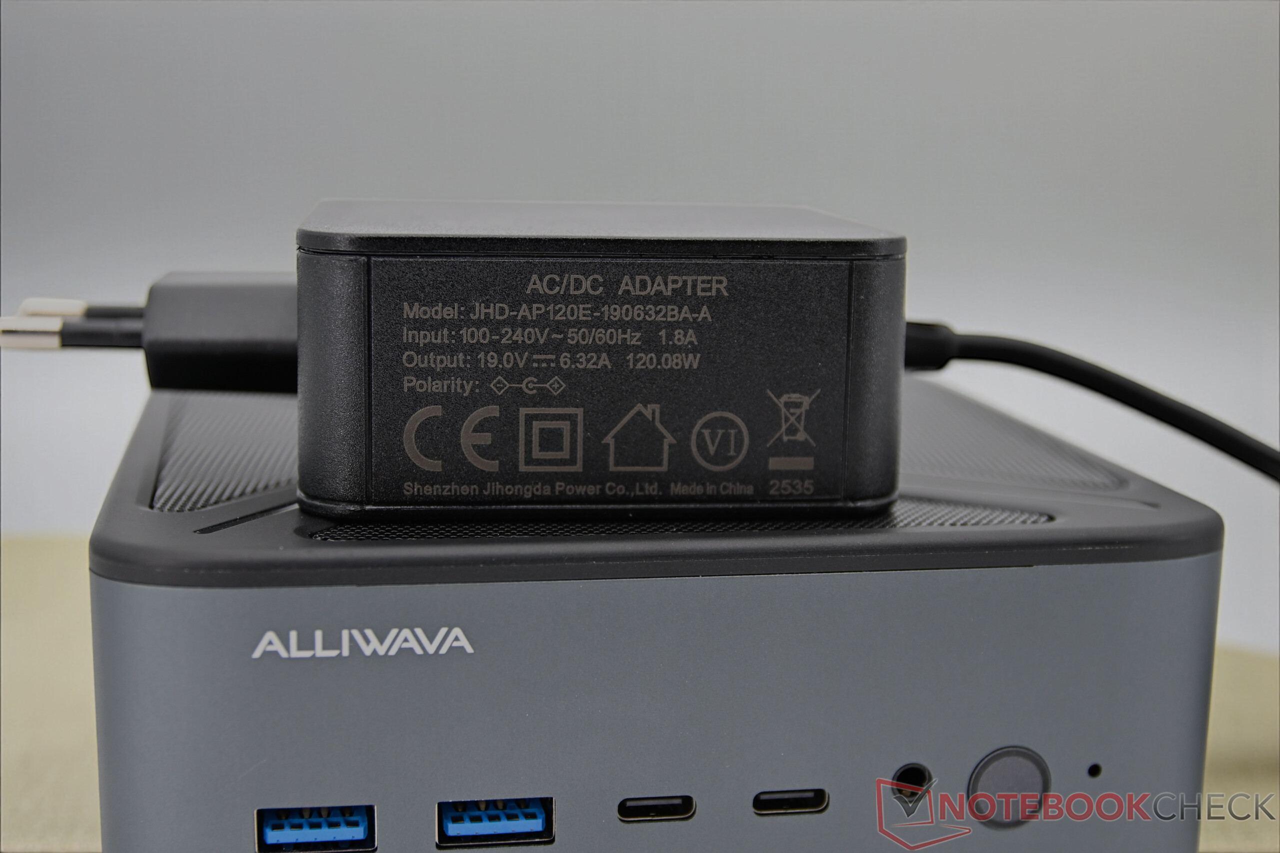 In our review, the Alliwava GH8 proves to be a comparatively energy-efficient mini PC. In idle mode, the power consumption is 6.5 to 10.7 watts, while around 60 watts are measured under typical load. Short-term load peaks of around 82 watts are no problem for the 120-watt power supply unit.