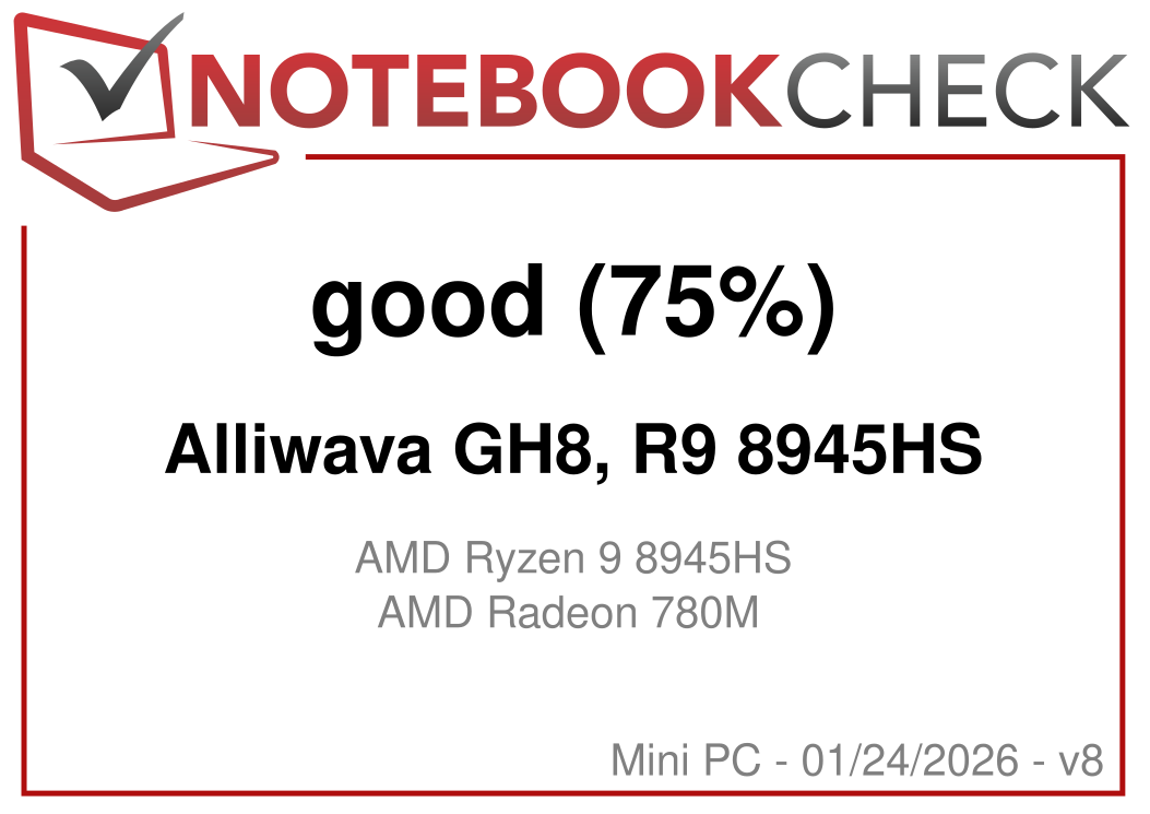 The Alliwava GH8 with AMD Ryzen 9 8945HS (Zen 4, 8 cores and 16 threads) offers high computing power overall and is positioned in the powerful mid-range of current mini PCs. The SoC can achieve a short-term power consumption of up to around 65 watts, but stabilizes at around 55 watts under sustained load. In a direct comparison, however, our test sample loses out to the Geekom A8, which is equipped with a supposedly weaker AMD Ryzen 7 8745HS.