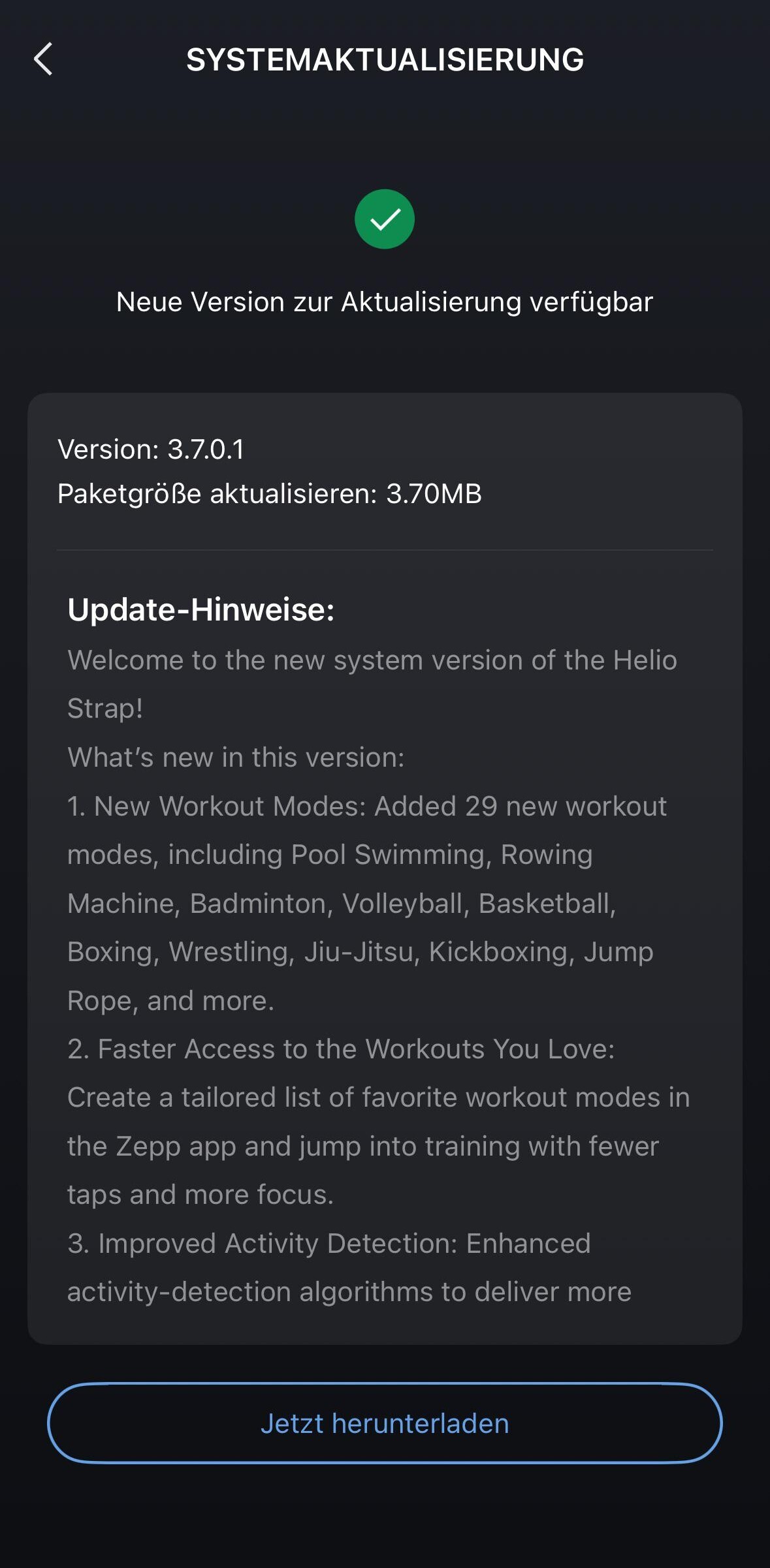 This version 3.7.0.1 appears to be rolling out in phases to users of the Amazfit Helio Strap (curr. $99.00 at Amazon). It has already reached some users in countries like the US and Germany, though when it will be available for everyone is unclear. As usual, the update will be installed via the Zepp smartphone app.