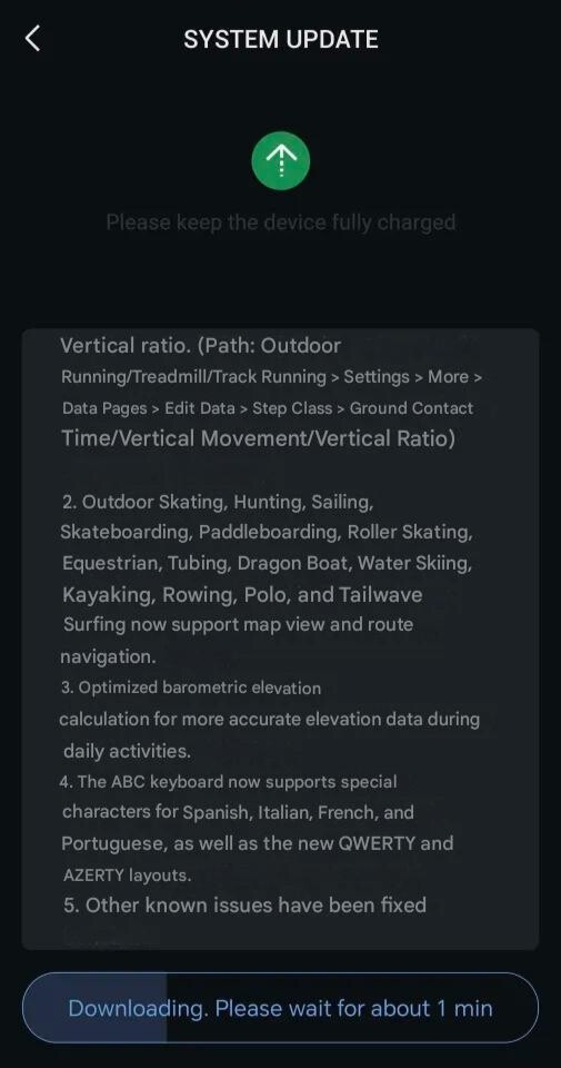 The release also brings support for map view and route navigation for more activities, like Outdoor Skating, Sailing, and Rowing. The barometric elevation calculator is said to offer improved accuracy, particularly for daily activities. There are two new keyboard layout options, QWERTZ and AZERTY. Plus, the ABC keyboard has gained special characters used in the following languages: Spanish, Italian, French and Portuguese. On top of this, there is said to be a range of bug fixes, though these are not listed.