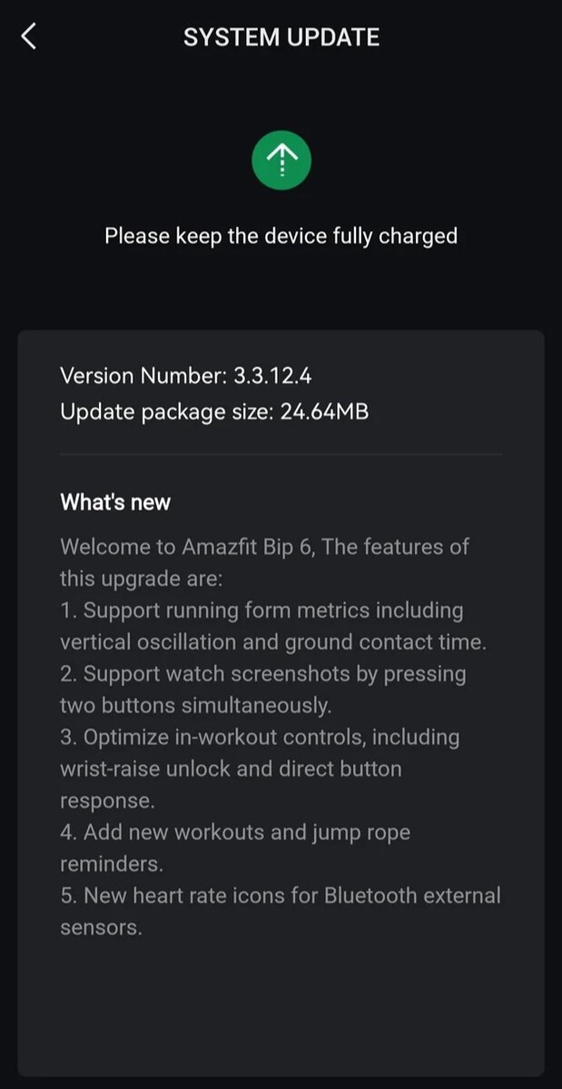 The Amazfit Bip 6 software version 3.3.12.4 is a 24.64 MB update. Rolling out in phases, it will be available to download via the Zepp app for all users in the coming weeks.