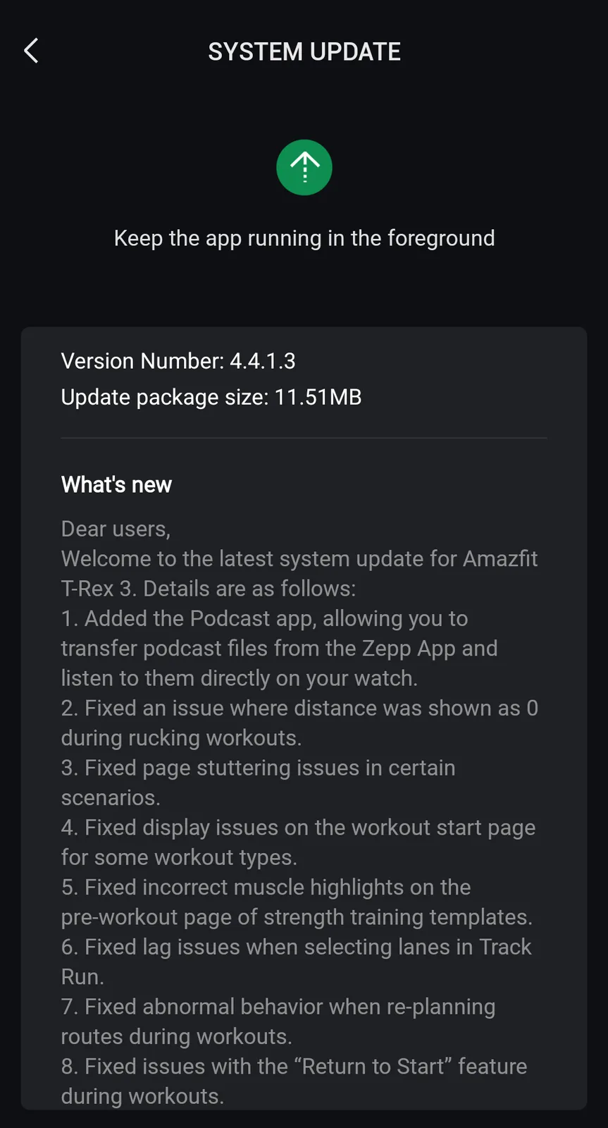 The latest release for the Amazfit T-Rex 3 Pro, firmware version 4.4.1.3, is an 11.51MB file. Reported by multiple users, it adds a new Podcast app to this smartwatch, enabling users to listen to downloaded episodes directly from their wearable. To do this, users will need to transfer their selected podcasts from the Zepp smartphone app.