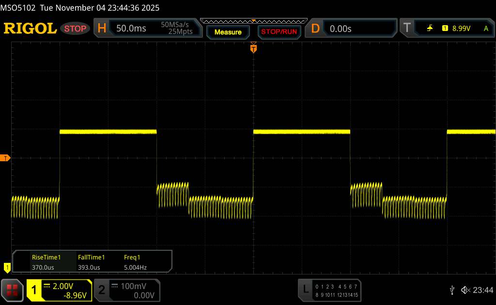 | 0.9 ms ... rise ↗ and fall ↘ combined | ↗ 0.512 ms rise | |