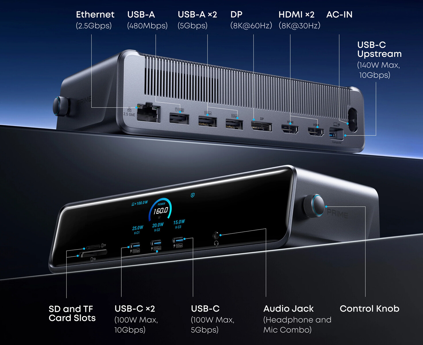 The company highlights that all the USB-C ports have support for fast charging and can transfer data at high speed. In particular, the upstream Type-C is a 140W full-function port. There's support for triple-display output, and as Anker notes, the dock can handle a single 8K Max output.