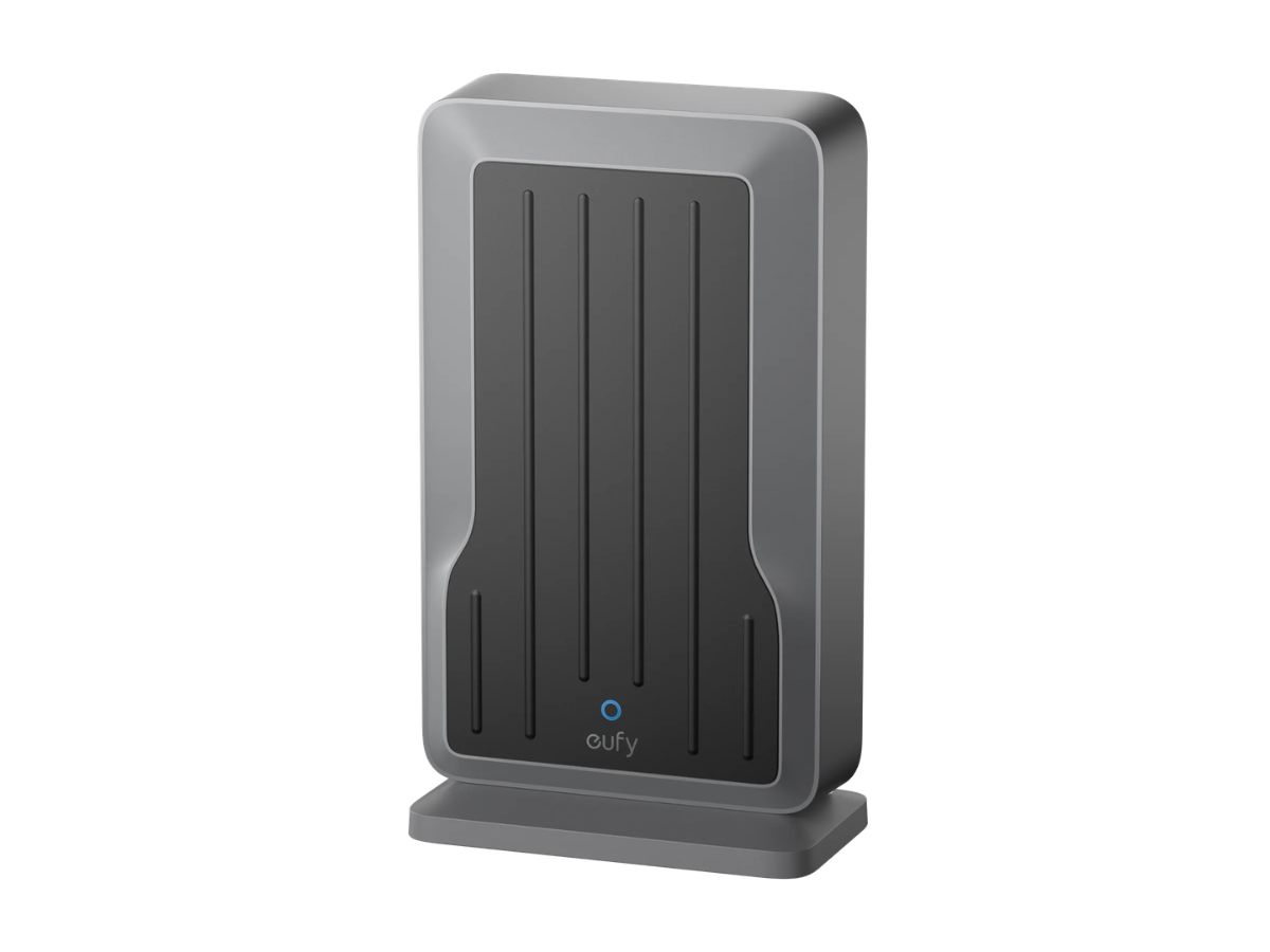 Eufy’s Wi-Fi Module can be sat on a desktop or mounted on a wall. The accessory from the Anker sub-brand is also referred to as the eufy WLAN Module, and has model number T8709. It has a metallic dark gray finish, and it appears to measure 3.18 x 1.73 x 5.53 inches (~80.8 x 43.9 x 140.5 mm).