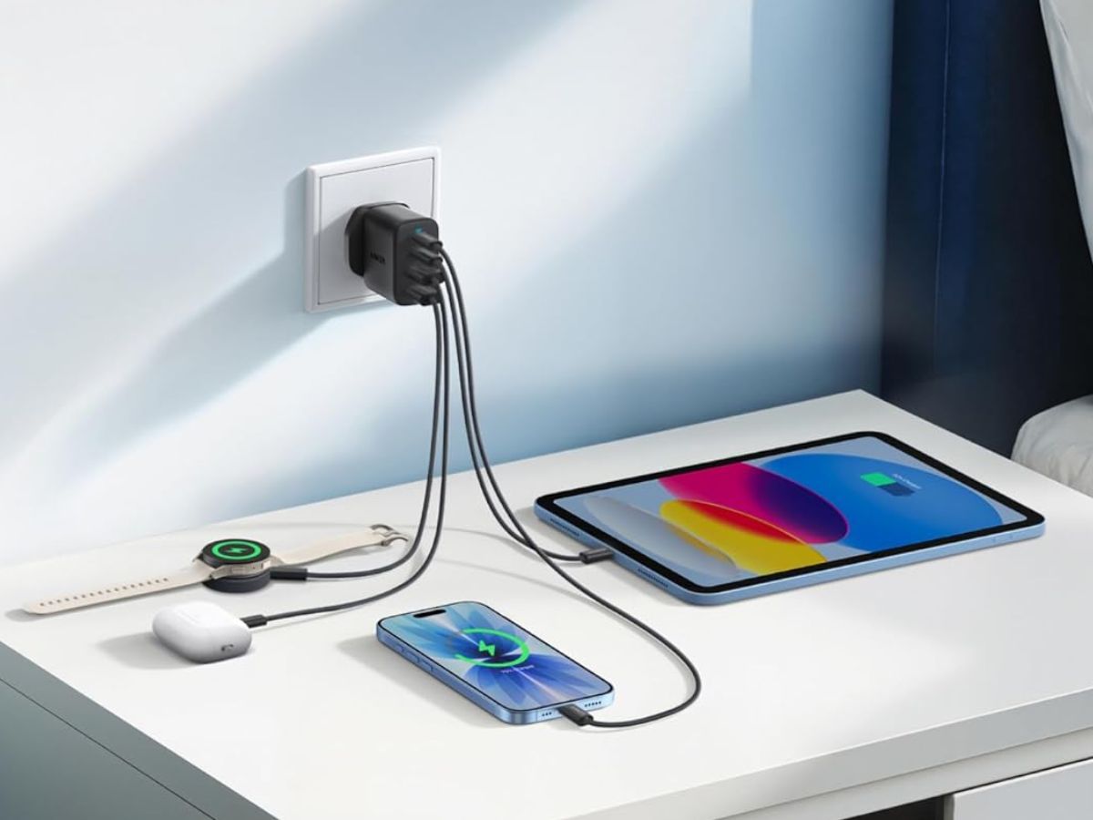 The new Anker Zolo Charger has two USB-C ports and two USB-A ports, allowing you to charge up to four devices simultaneously. The first USB-C port offers up to 30W power, which the brand suggests would allow you to charge an iPhone 17 to 50% in 21 minutes. The second USB-C offers up to 20W when charging two devices simultaneously. With three or four ports in use, the first USB-C maintains its 30W output, with the remaining ports sharing 15W power.