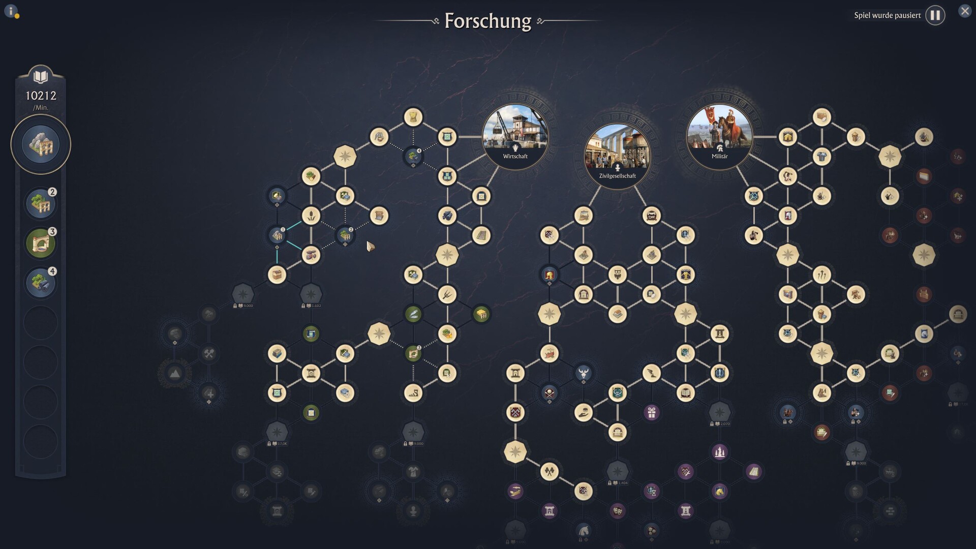 Another powerful new gameplay mechanic is the research system. It’s important right from the start and provides access to building upgrades and alliance options, among other things. The research tree is divided into three branches, namely economy, civil society and military. Advanced technologies are heavily tied to milestones. In addition to generating a certain amount of knowledge, players must also meet specific requirements, such as building several mines or aqueducts or reaching certain population levels.