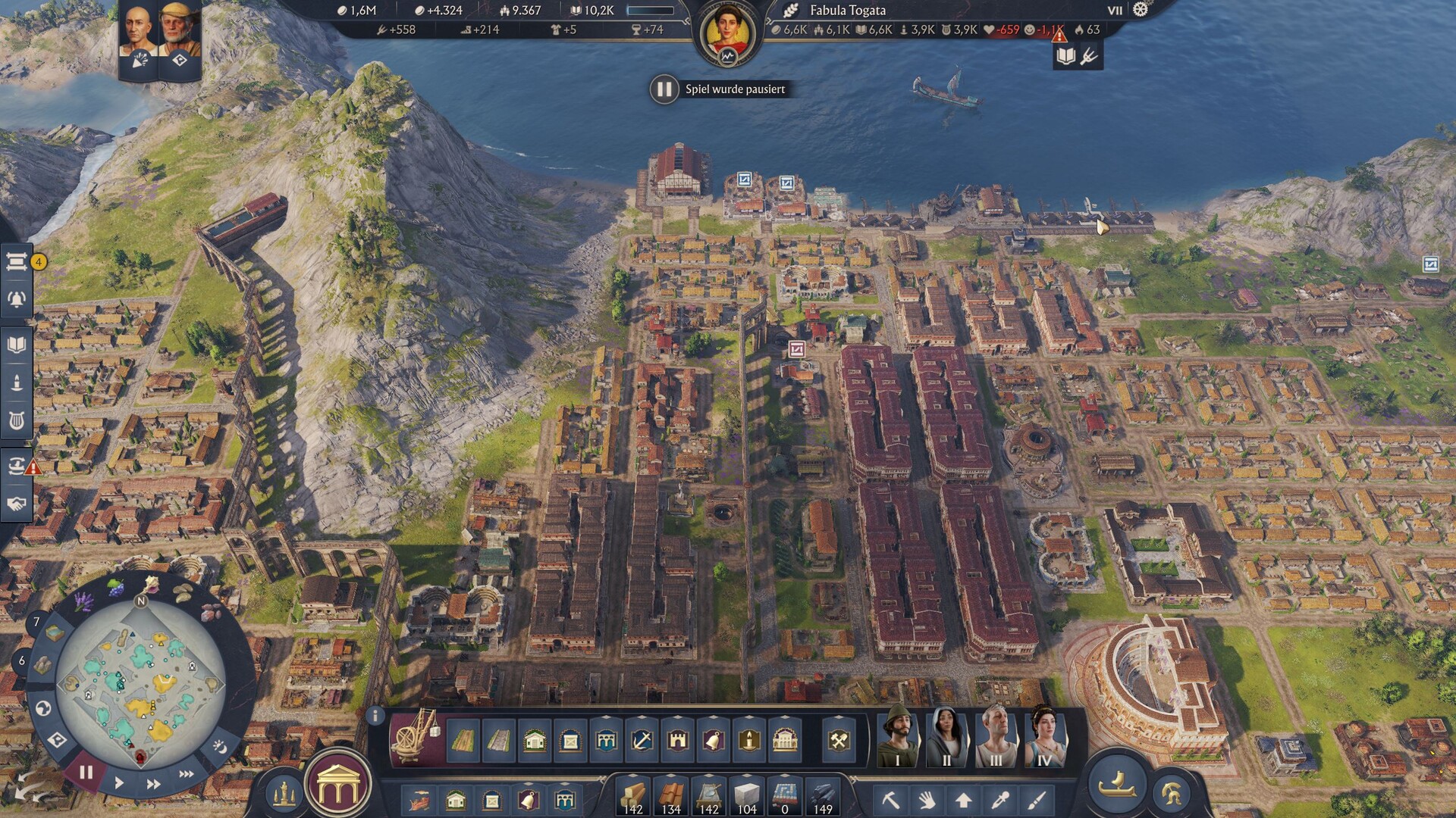 This means that Anno 117 becomes somewhat of a puzzle game and actively encourages the integration of production buildings into the main city. This creates visual variety and prevents settlements from looking too uniform. However, the new Anno installment misses an opportunity for true mixed-use areas. In ancient Rome, there were buildings in which workshops and stores occupied the first floor. That would likely have required a modular construction system but would have made cities visually more diverse and opened up new possibilities. True to Anno tradition, population density increases with each civilization level, so patricians no longer live in spacious domus houses but in elegant tall buildings.