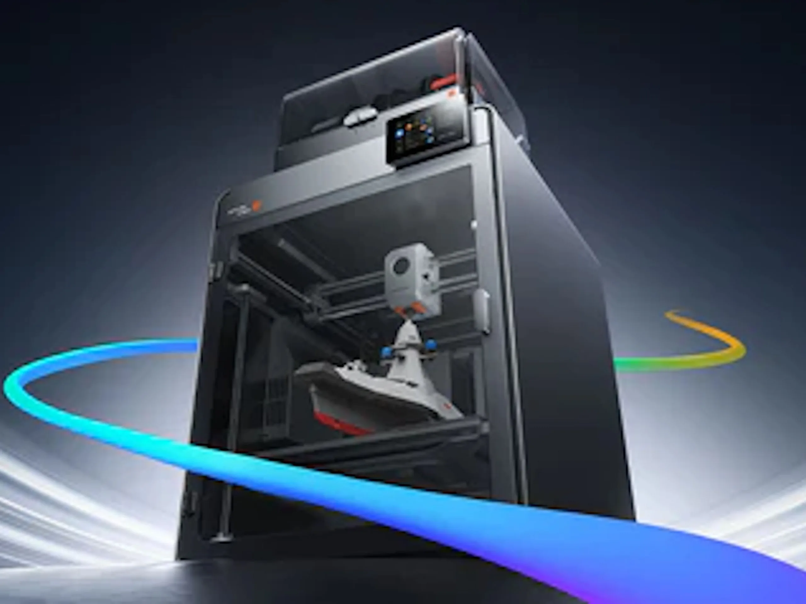 The Kobra S1 Max Combo is an enclosed 3D printer with multifilament support. However, because it only has a single printhead, filaments need to be cut when switching colours or material types, resulting in a small amount of waste. The build chamber, nozzle and print bed can be heated to 65°C, 350°C and 120°C (149°F, 662°F and 248°F), respectively. When paired with multiple add-on modules, the printer can support up to 16 filaments simultaneously, including carbon fibre-reinforced options.