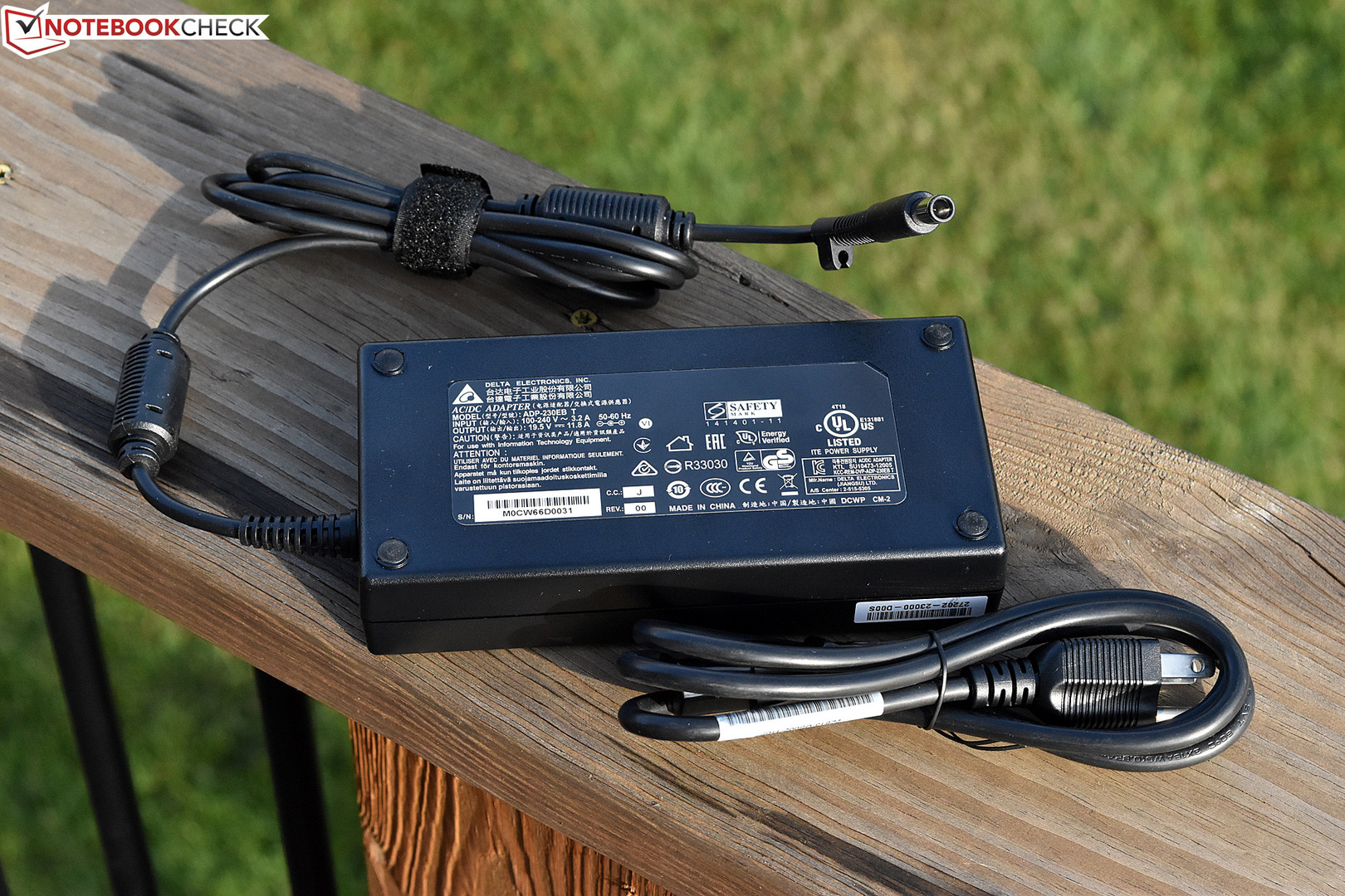 The X7 DT v6 includes a fairly hefty 230W Delta Electronics ADP-230EB T AC adapter, which is a relatively common adapter also used for some ASUS ROG notebooks. It weighs in at 900 g, which is a typical size for a notebook of this class. Apart from the power adapter, a microfiber cleaning cloth and a USB flash drive loaded with system drivers are also in the box.
