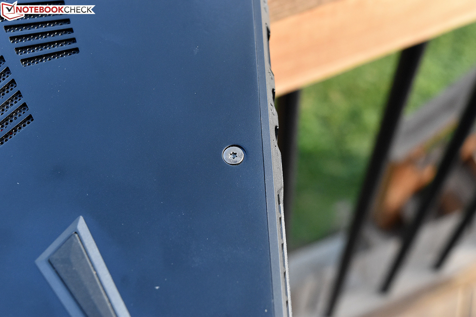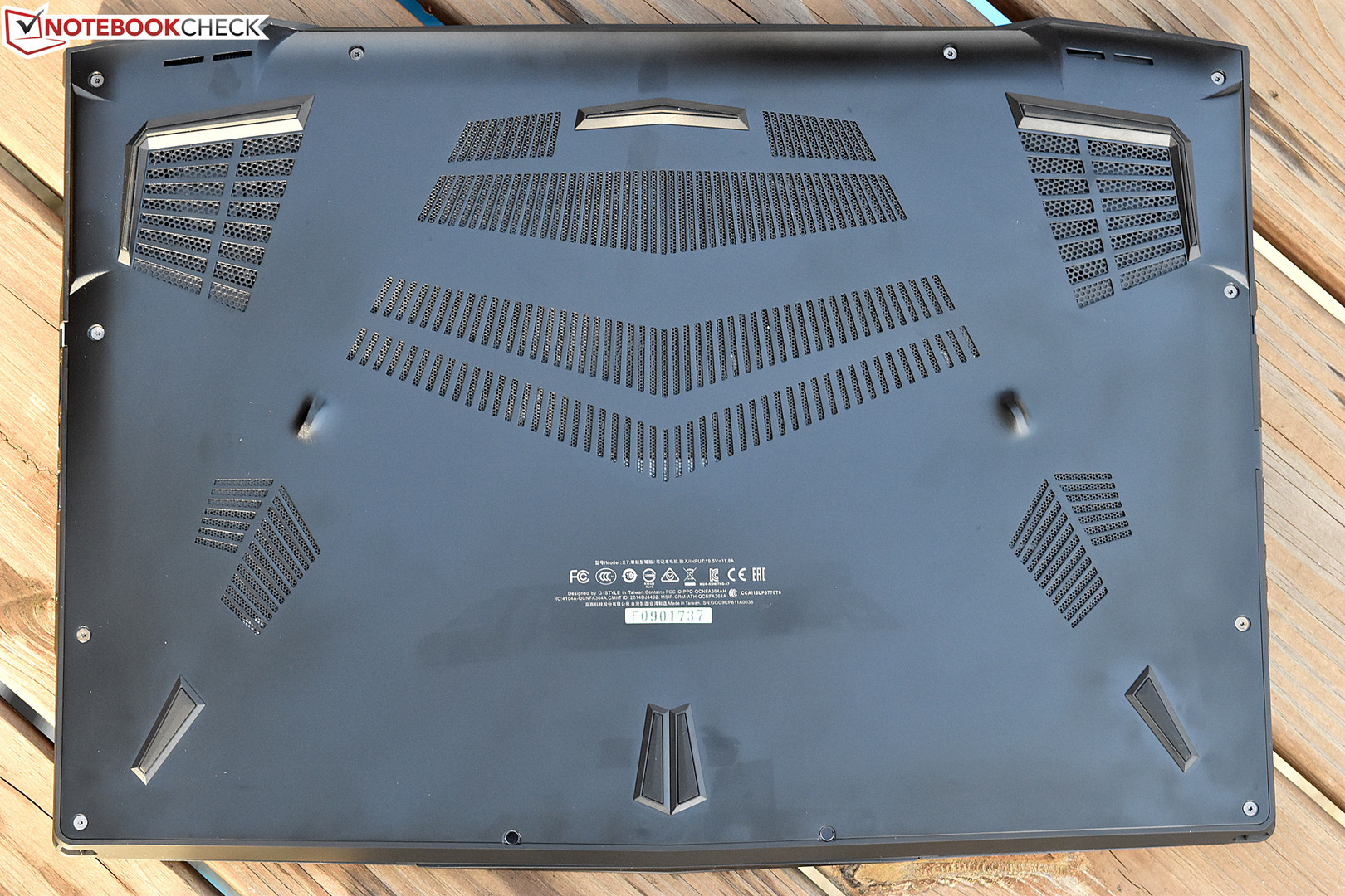 Average temperatures under load on the top and bottom of the base unit are just 33.6 °C and 39.8 °C, below that of most competitors overall (especially the top of the base unit), with the exception of the MSI GT73VR (~35 °C top/bottom), which is no surprise given that it almost resembles a leaf blower with Turbo Fan enabled. The cooler palm rest and keyboard temperatures of the X7 are due in part to its clever ventilation design, which features intake vents situated at the top left and right corners of the top side of the base unit. This both ensures good intake airflow (when taken in conjunction with the intake vents on the bottom, which are still intact as well) and helps keep those areas of the keyboard surround cooler. This was a good design choice which seems to have had a positive effect on overall temperatures.