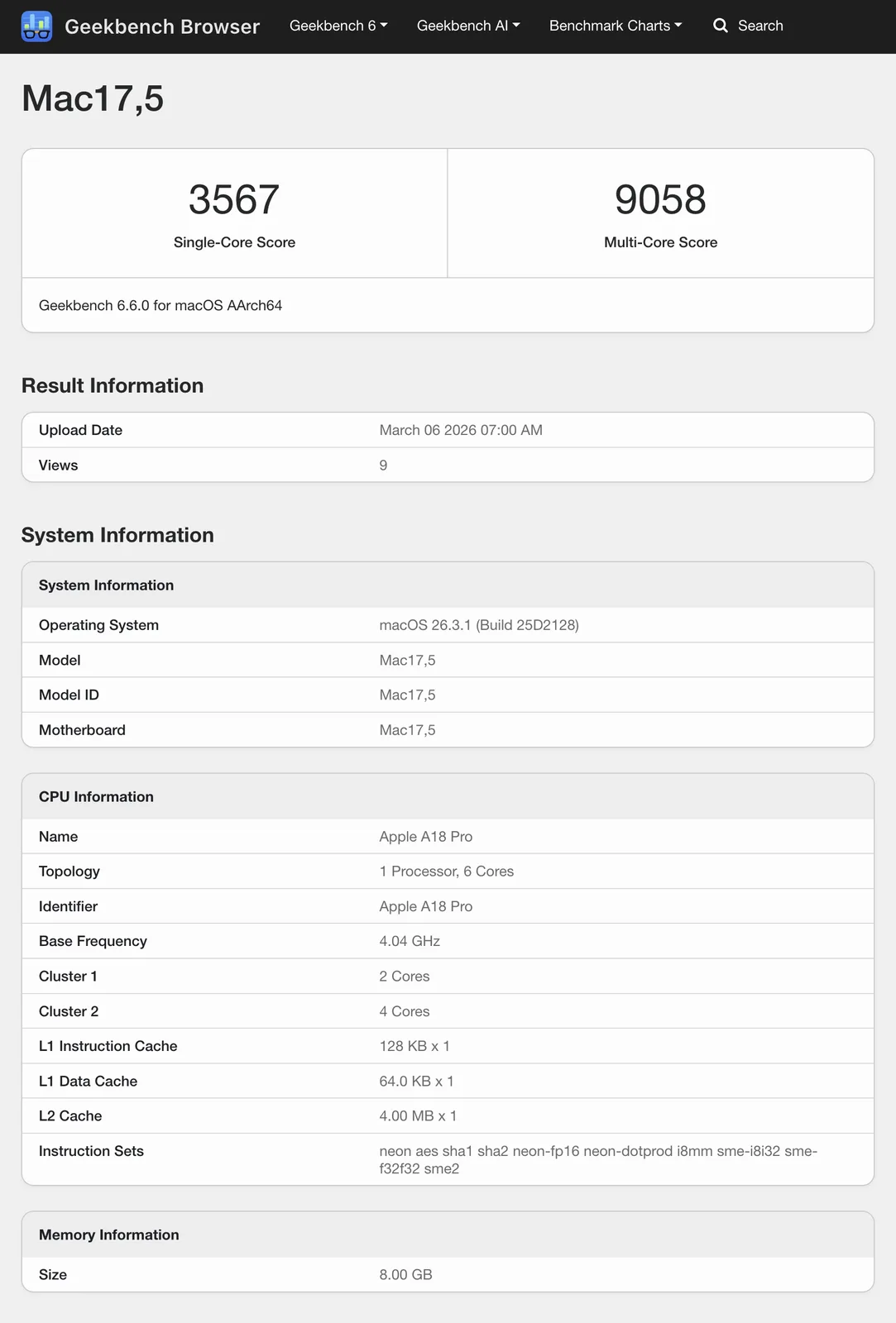 Apple will not begin shipping the MacBook Neo until March 11. Announced during an in-person event, the new 13-inch MacBook is already available to pre-order for $599 from third parties like Amazon after debuting on March 4. While we await the first independent reviews, Geekbench has provided some insights into the performance we can expect from Apple's first A18 Pro-powered laptop in CPU and GPU-heavy workloads.