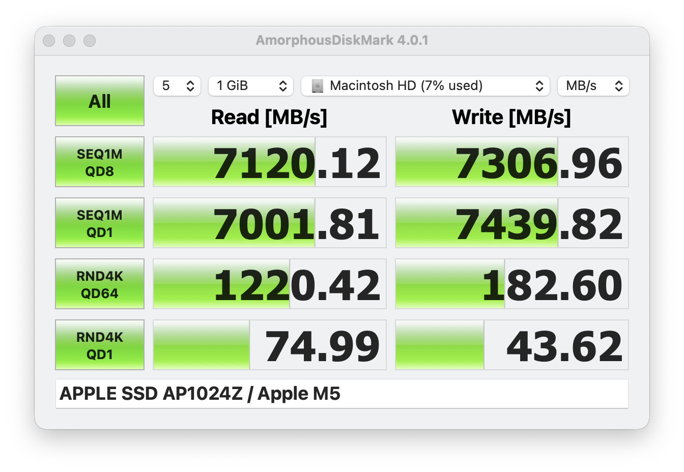 Apple has once again significantly boosted performance with its new M5 SoC, which is currently by far the fastest single-core processor available on the market. The improvements in its multi-core and graphics performance over the old M4 SoC are now even greater. Plus, the speed of the SSDs has been increased to PCIe 4.0 levels.