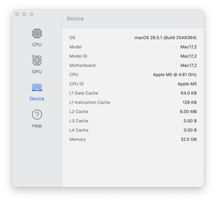 The new M5 SoC is still manufactured using the 3 nm process and once again features 10 cores. Four of these are fast performance cores that reach up to 4.608 GHz, and six are efficiency cores with a maximum clock speed of 3.048 GHz. The processor can consume a maximum of 30.5 watts and then quickly settles at 27.5 watts. For more detailed information and efficiency values, please refer to our analysis article on the new Apple M5.