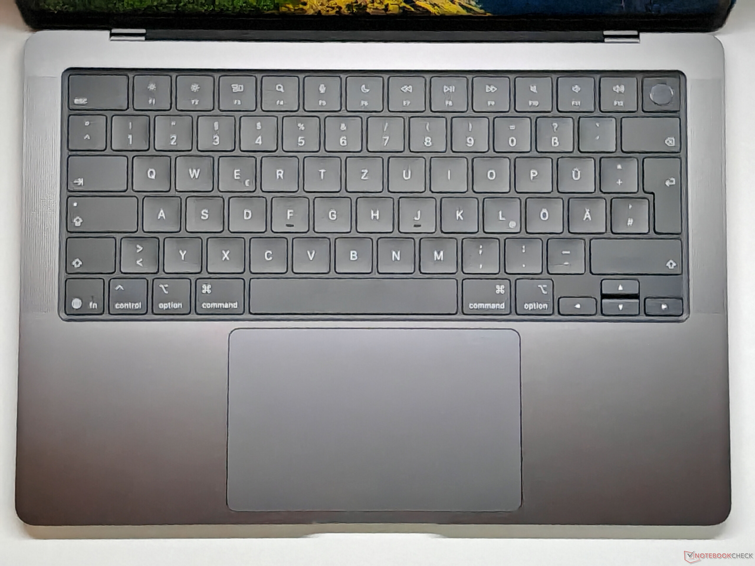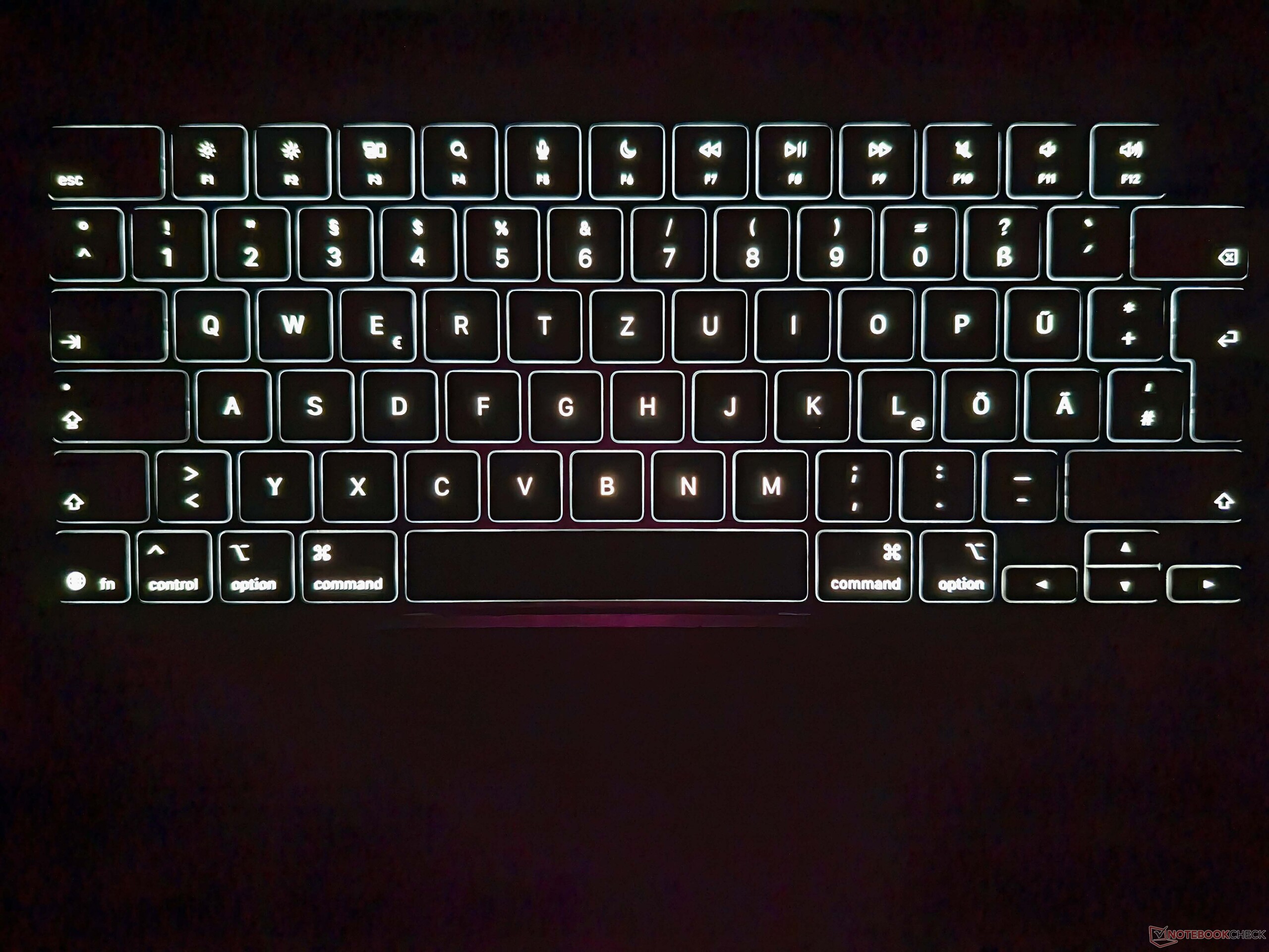 Apple continues to rely on the familiar Mini LED panel. Buyers can also choose a matte version (+$150), which we had available to us during our test. Its image quality suffers minimally as a result of the matte surface and colors aren't quite as brilliant, but in turn, you get to work in bright environments without having to contend with annoying reflections. The Mini LED backlight flickers constantly at a very high frequency of just under 15 kHz, so there should be no problems for sensitive users. Unfortunately, due to this flickering, we couldn't accurately determine the screen's response times, so our measurement results are only of limited significance. Together with its 120 Hz refresh rate, there are no problems whatsoever with visible ghosting.
