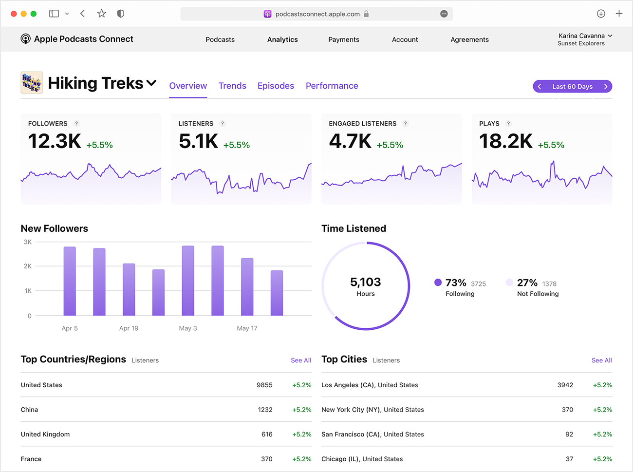 All podcast creators will soon gain access to enhanced listenership metrics in Apple Podcasts Connect. From the Analytics tab, users will be able to access the number of followers per show and easily measure followers across shows. They can also compare the amount of time listened for those following and not following the show including a new “Trends” menu that illustrates the loss and gain of followers over time.
