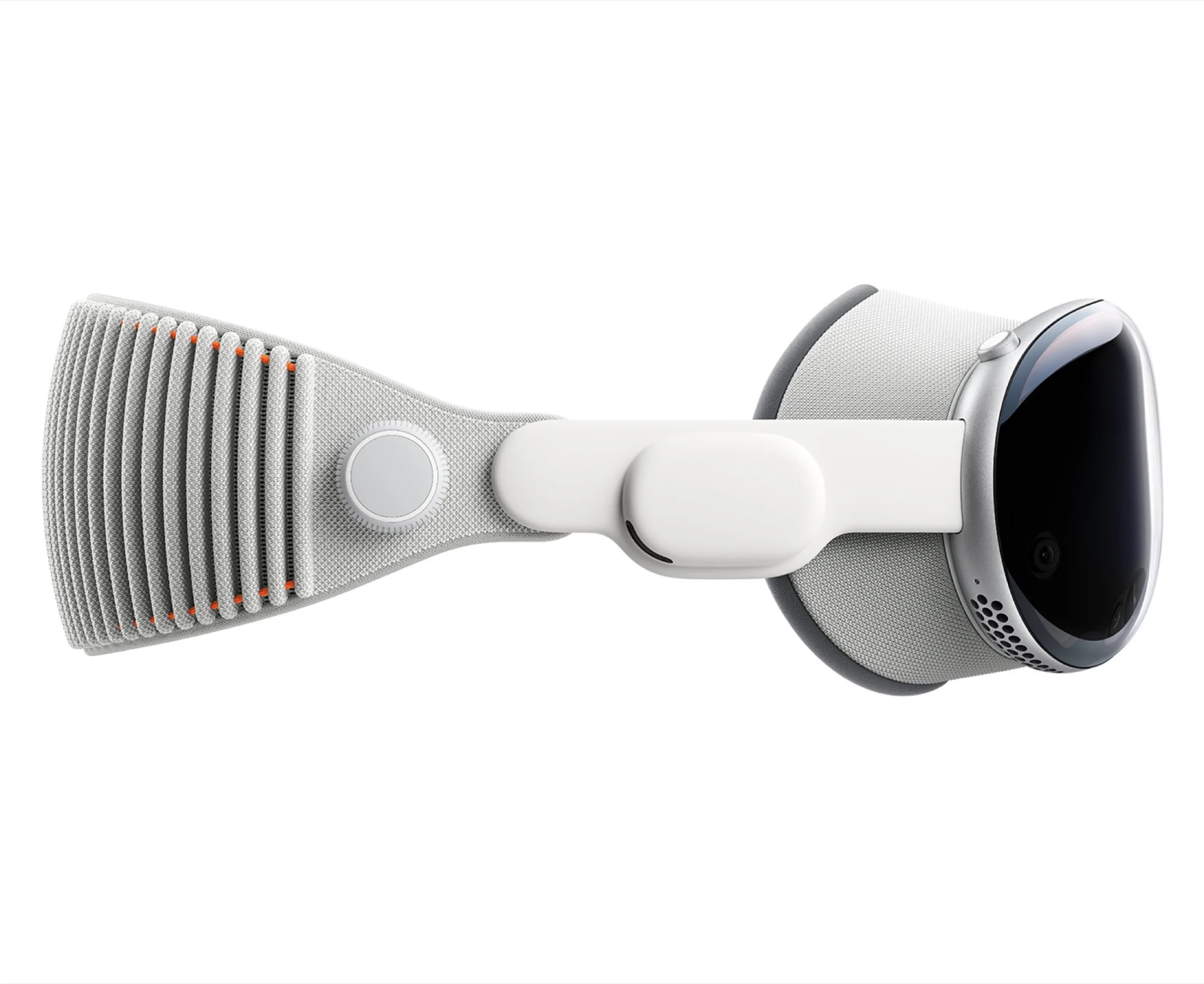 The stereoscopic 3D camera, which can be used to record spatial videos, has a resolution of 6.5 "stereo megapixels" and an 18 mm f/2.0 lens. Apple Vision Pro supports Wi-Fi 6, Bluetooth 5.3, and the HDR formats Dolby Vision, HDR10, and HLG. In addition to Apple Lossless and FLAC, the audio formats Dolby Atmos and Dolby Digital Plus, which are commonly used for movies, are also supported. Depending on the accessories used, the headset weighs between 600 and 650 grams. Apple comes with a 30-watt USB-C charger, a battery, a 1.5-metre cable and a polishing cloth.