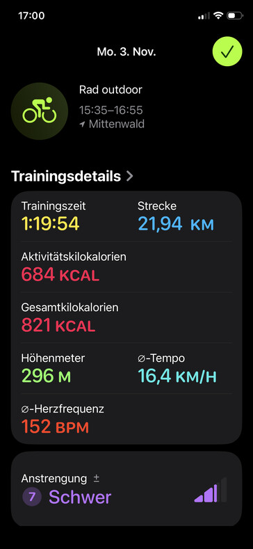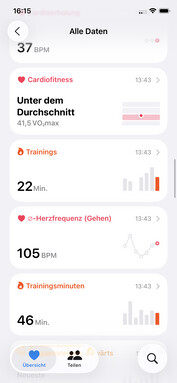 Workout data can be viewed directly on the watch or in the companion app on the iPhone. Readability during exercise is excellent, even in bright conditions. The Watch 11 also inherits the depth gauge from the Watch Ultra, which activates automatically when the watch is submerged.