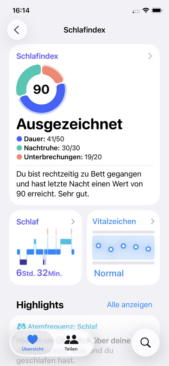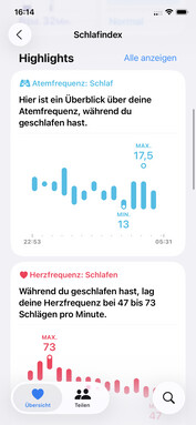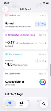 The Apple Watch Series 11 includes comprehensive sleep tracking. The software breaks down individual sleep stages and assigns an overall sleep score. It also records several vital metrics during the night, including breathing rate and skin temperature.