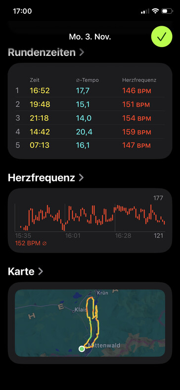 We also measured heart rate during activity at three different times. On average, the deviation was only 0.4 percent, with the largest single discrepancy being two beats per minute; two of the three measurements were identical. (We’ve compiled a detailed overview of smartwatch measurement accuracy separately.)
